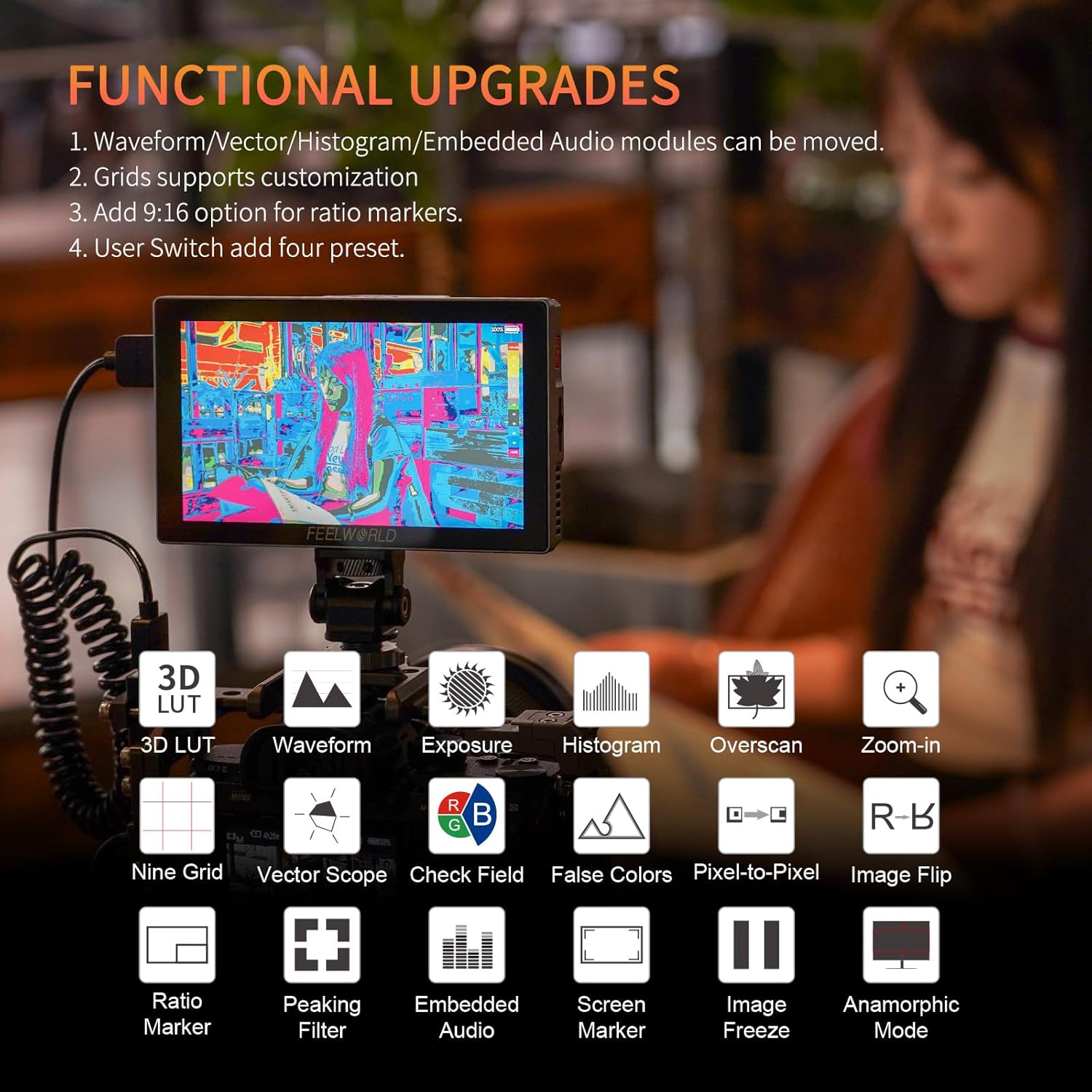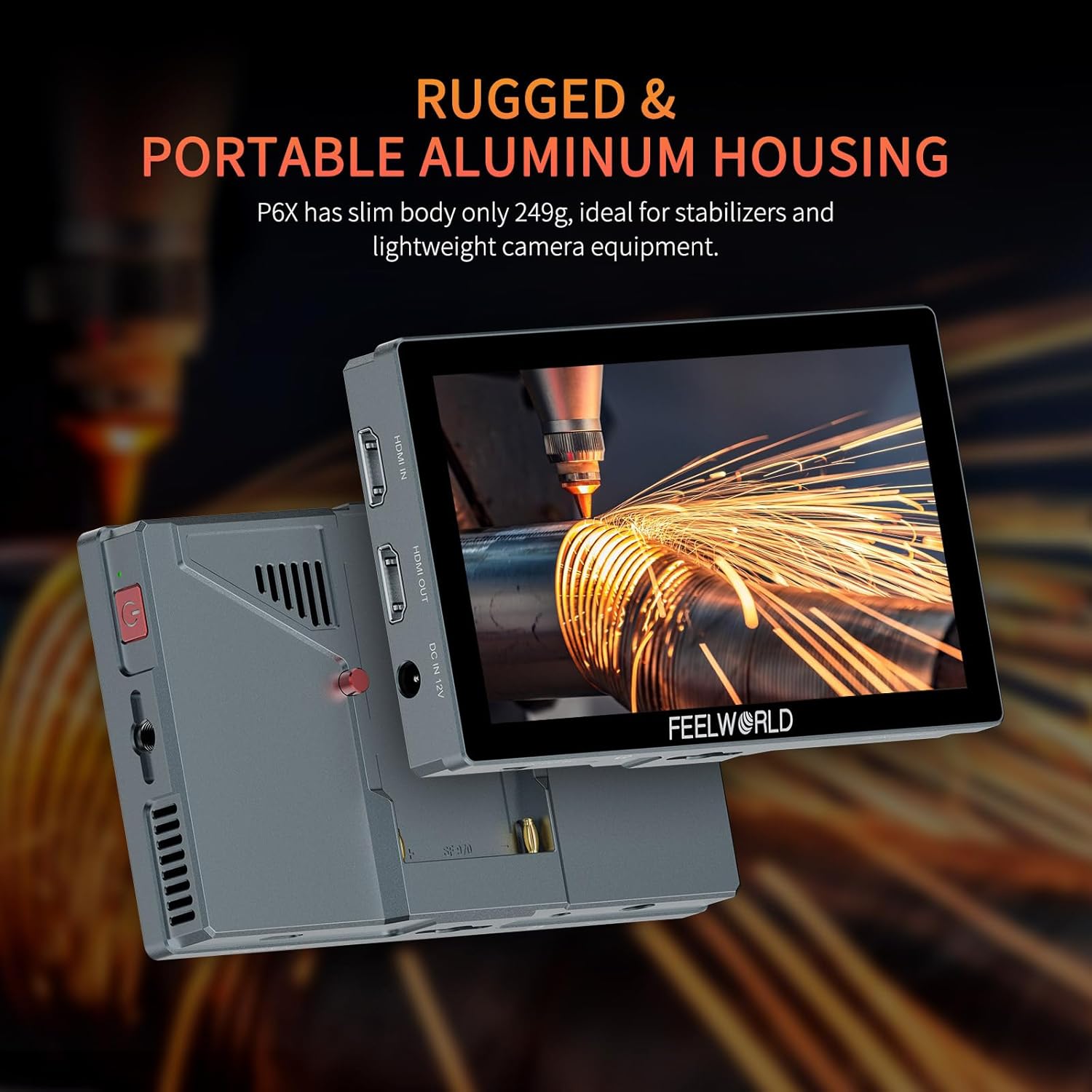 The FEELWORLD P6X is a compact and lightweight 5.5-inch camera field monitor, offering a bright and clear display for precise monitoring. With features like touchscreen control, waveform, HDR support, and 4K HDMI input/output, this monitor is perfect for DSLR and mirrorless camera users seeking a professional monitoring solution. The included F750 battery and bag ensure you're ready for any shoot.