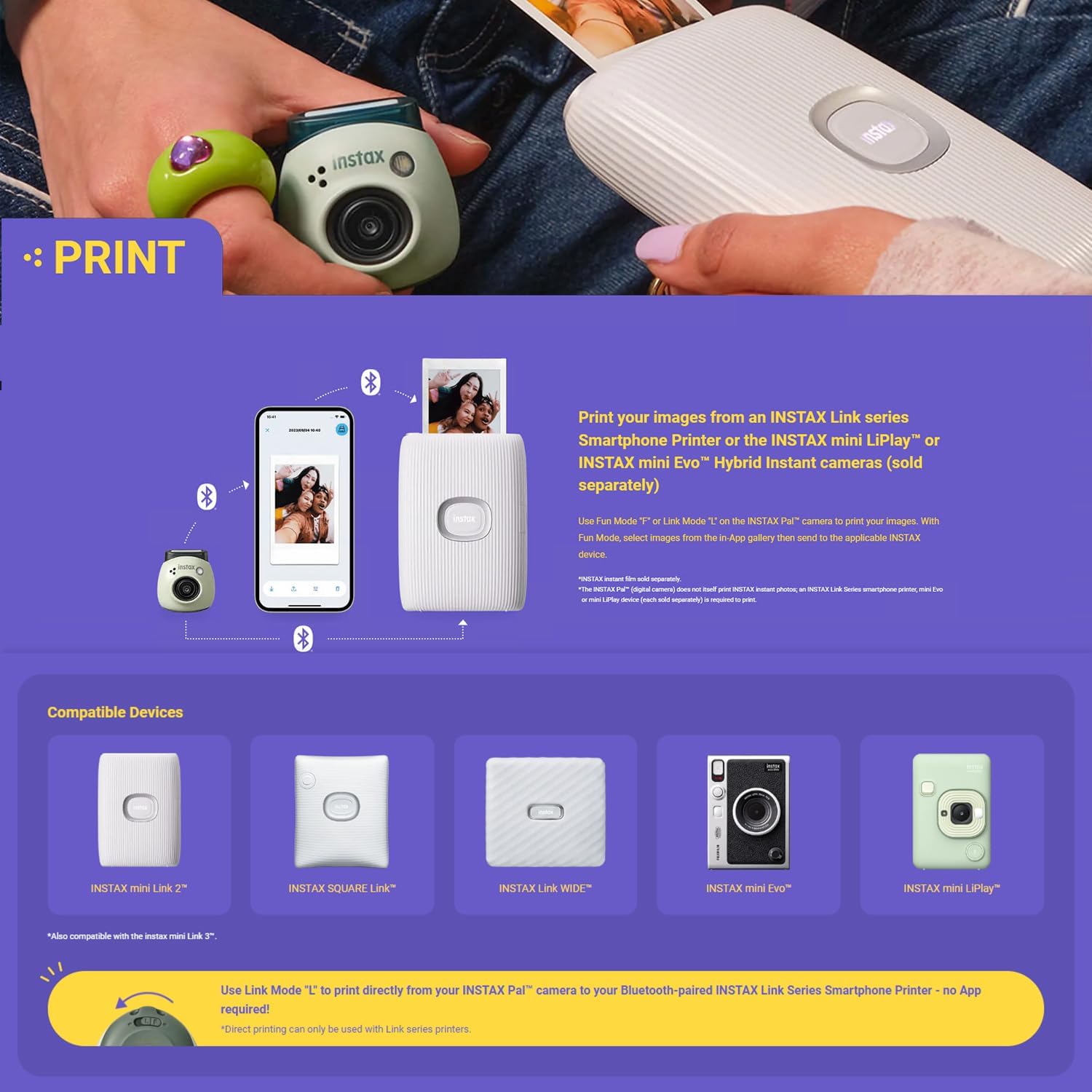 - Bundle Includes: Matching Instax PAL Case with Strap, 32GB Memory Card, Multiuse Detachable Ring, USB-C Charging Cable