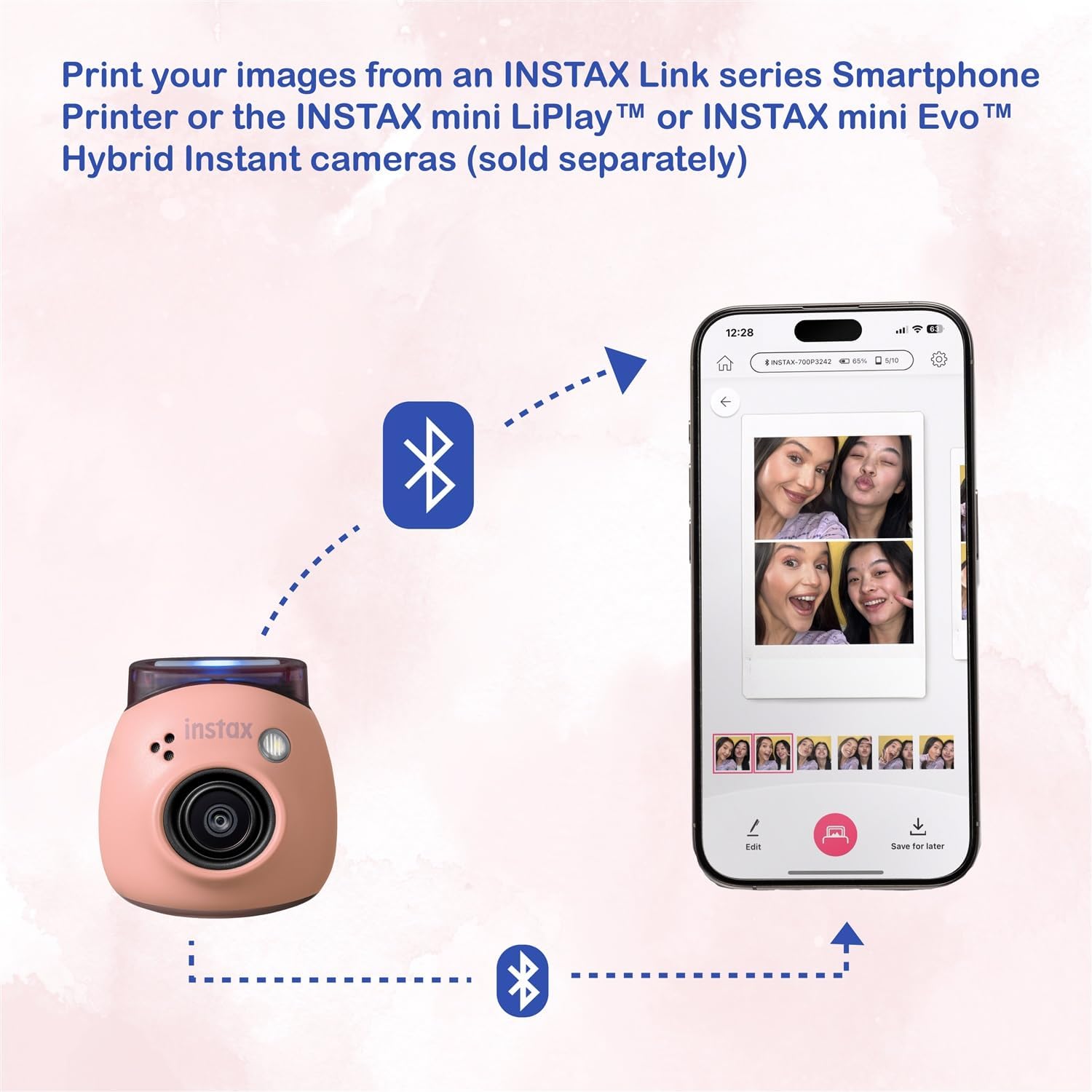 - Includes: Fujifilm Instax PAL Digital Camera (Powder Pink), 32GB micro SD Card with Adapter, Multiuse Detachable Ring, USB-C Charging Cable, Limited 1-Year Manufacturer Warranty, and Camera Cleaning Cloth