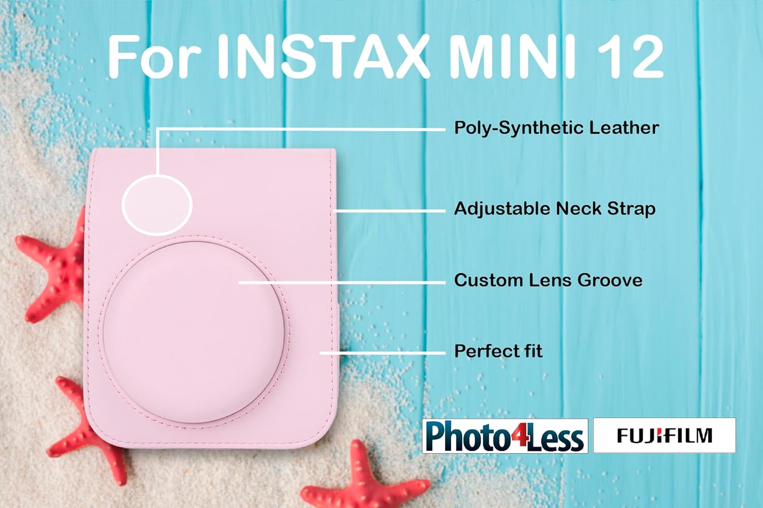The Fujifilm Instax Mini 12 Instant Film Camera lets you express your creativity and capture unforgettable moments with ease. This bundle includes the Instax Mini 12 camera in a stylish blossom pink, along with a twin pack of Instax Mini film, a protective case, and a starter gift bundle. With its simple controls, close-up mode, and automatic flash, this camera is perfect for portraits, selfies, and everyday snapshots.