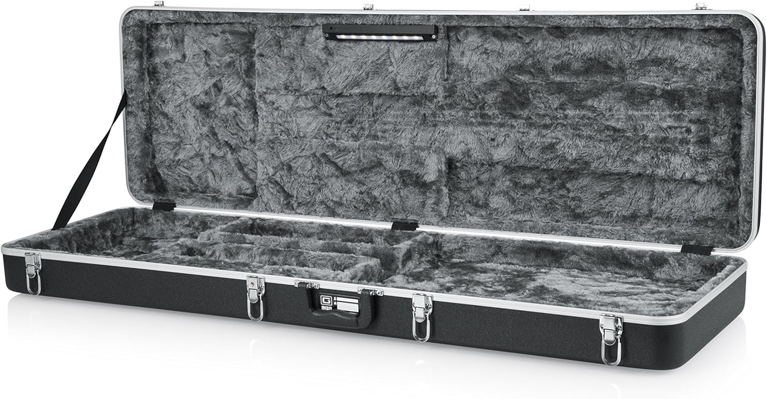 Overview: The Gator GC-BASS-LED Deluxe ABS Molded Case combines robust protection with innovative LED lighting. Its durable ABS exterior and plush interior safeguard your bass guitar, while the integrated LED light provides convenient illumination of the storage compartment for accessories. Specifications: * **Exterior Material:** Rugged Impact-resistant ABS plastic * **Handle:** Extra-strength handle for a comfortable and secure grip * **Valances:** Heavy-duty aluminum valances reinforce overall strength * **Interior Lighting:** LED light illuminates storage compartment * **Interior:** EPS foam with plush lining * **Body Length:** 21.1" / 53.59 cm * **Body Height:** 2.4" / 6.09 cm * **Lower Bout Width:** 13.6" / 34.54 cm * **Middle Bout Width:** 13.6" / 34.54 cm * **Upper Bout Width:** 13.6" / 34.54 cm * **Overall Length:** 47.4" / 120.39 cm * **Product Dimensions:** 49.5 x 5.8 x 16 inches * **Item Weight:** 12.6 pounds * **Country of Origin:** China * **Warranty:** Limited lifetime warranty on manufacturing defectsWe partner with Amazon and other retailers to provide accurate product information and convenient access to purchase options. As an Amazon Associate we earn from qualifying purchases.