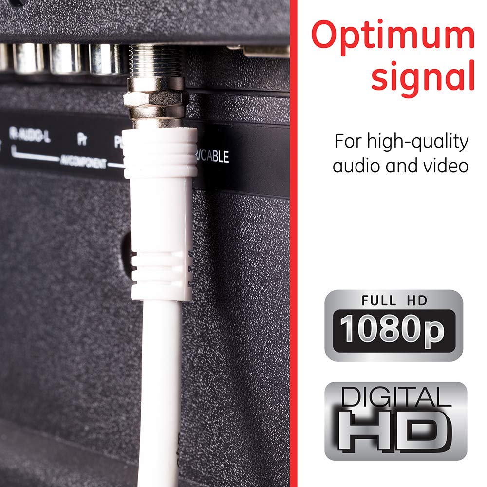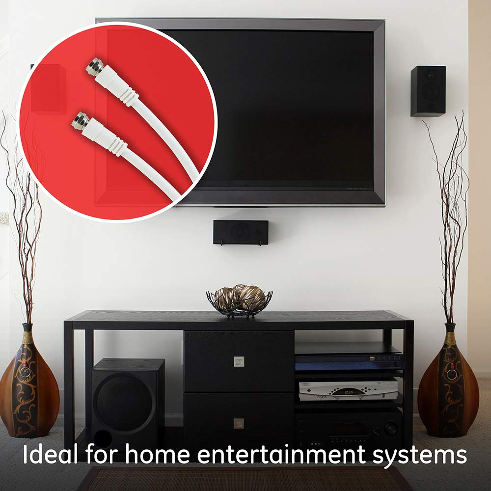 The GE RG6 Coaxial Cable provides a secure and clear connection for your home entertainment system. This double-shielded coax cable is ideal for connecting TVs, DVRs, VCRs, satellite receivers, and cable boxes, ensuring optimal audio and video quality.