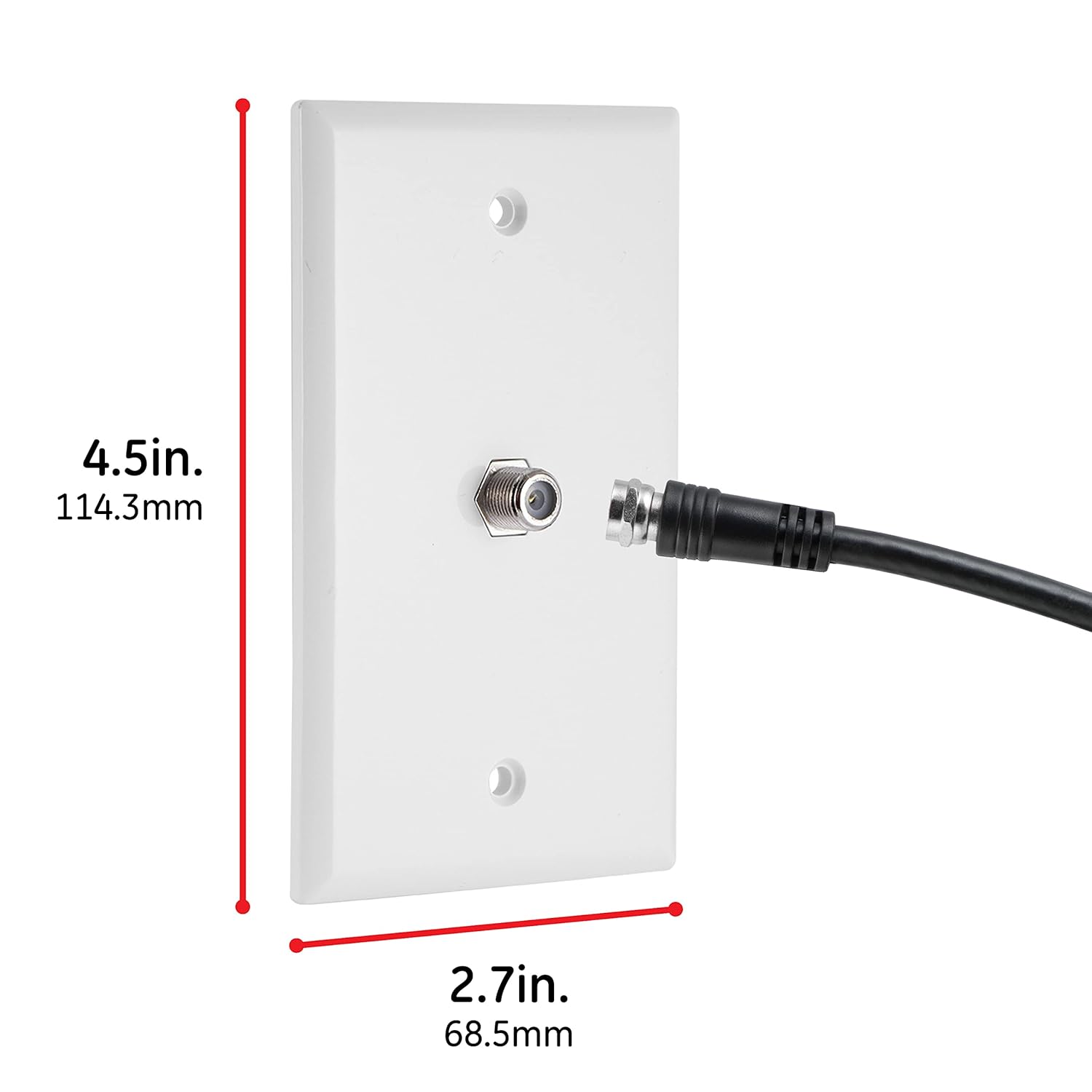 * **Brand:** GE * **Model:** 40050 * **Type:** Single-Port Coax Plate * **Connector Type:** F-Type * **Color:** White * **Compatibility:** HDTVs, Blu-ray/DVD players, satellite and cable receivers, modems, routers, TV antennas * **Installation:** Fits single-gang wall boxes * **Material:** Plastic * **Dimensions:** 2.7"W x 4.5"HWe partner with Amazon and other retailers to provide accurate product information and convenient access to purchase options. As an Amazon Associate we earn from qualifying purchases.