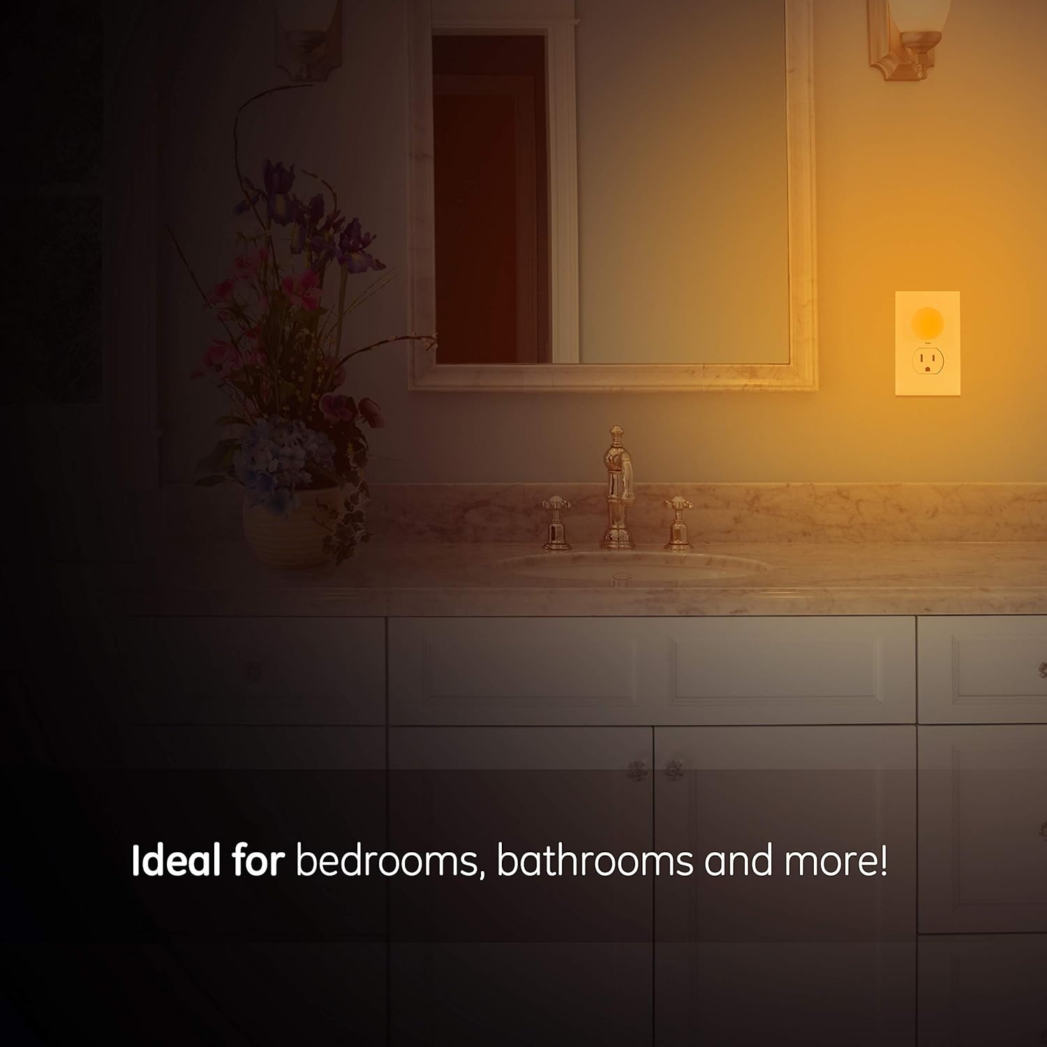 The GE SleepLite LED Night Light 2-Pack provides soothing, warm amber illumination to any room. Designed with a dusk-to-dawn sensor and energy-efficient LED technology, these night lights promote better sleep by minimizing blue light exposure.