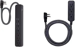 This GE UltraPro combo offers both surge protection and extended reach for your power needs. The 6-outlet surge protector provides 620 joules of protection with a 2ft braided cord, while the 8ft designer extension cord with 3 outlets offers flexible power access. Both feature flat plugs for space-saving convenience.