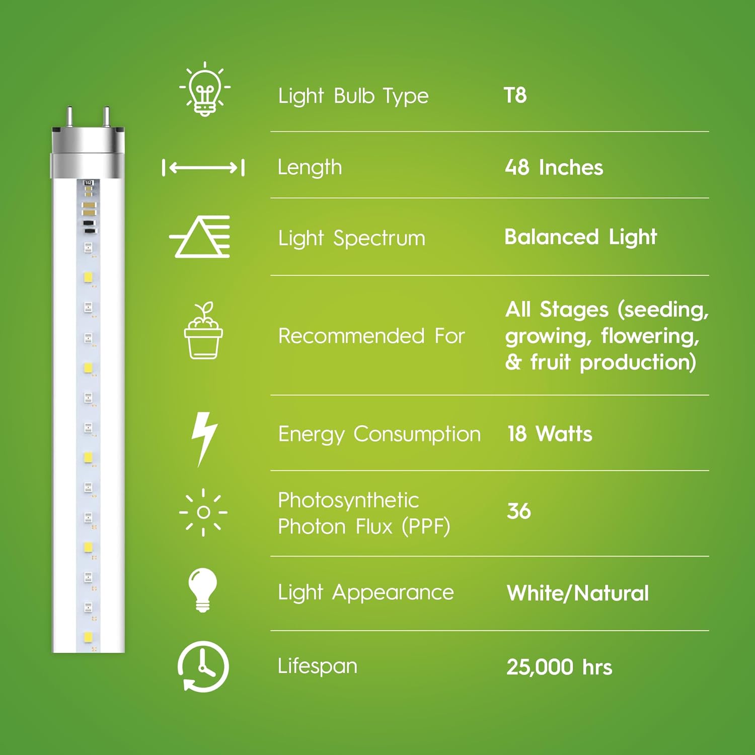 The GE T8 LED Grow Lights are specifically designed for seeds and greens, providing a balanced red-blue light spectrum essential for plant growth. Ideal for both gardening enthusiasts and professionals, these energy-efficient bulbs mimic natural sunlight, promoting healthy development and vibrant crops.