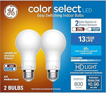 GE Color Select LED A19 Light Bulbs 2-Pack