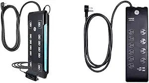 This bundle includes the GE 12-Outlet Surge Protector and the UltraPro 10-Outlet Surge Protector, providing comprehensive protection for your valuable electronics. With multiple outlets, USB charging ports, and high joule ratings, these surge protectors ensure your devices are safe from power surges and spikes.
