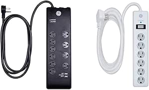 Protect your valuable electronics from power surges with the GE UltraPro Surge Protector combo. This bundle includes a 10-outlet power strip with USB charging ports and a 6-outlet surge protector, providing comprehensive protection and convenient power access for your devices.