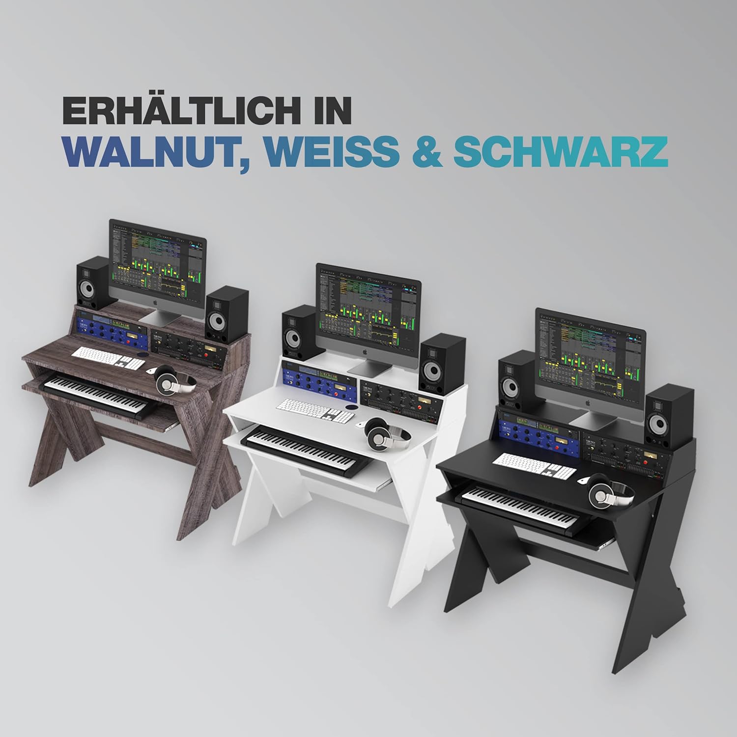 Unleash your creative potential even in limited spaces with the Glorious Sound Desk Compact. This professional studio workstation combines functionality, design, and stability in a compact form, providing a versatile workspace for producers and musicians.