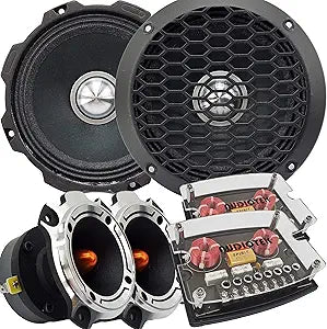 Transform your car audio system with the Gravity Warzone Series. This bundle includes high-performance 6.5” midrange speakers, heavy-duty titanium super tweeters, and a pair of crossovers, delivering powerful and clear sound quality for an immersive listening experience.