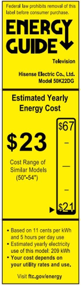 **Specifications:** * **Brand:** Hisense * **Model:** 50K22DG * **Screen Size:** 50 inches * **Resolution:** 1080p Full HD * **Backlight:** LED * **Smart Functionality:** No * **Inputs:** 2 HDMI, 1 MHL, Composite, Component, USB, Digital Audio Output, Headphone Output * **Audio:** 5-Band Graphic Equalizer * **Dimensions with Stand (WxHxD):** 44.4'' x 28.5'' x 11.1'' * **Dimensions without Stand (WxHxD):** 44.4'' x 26.3" x 3.1''We partner with Amazon and other retailers to provide accurate product information and convenient access to purchase options. As an Amazon Associate we earn from qualifying purchases.