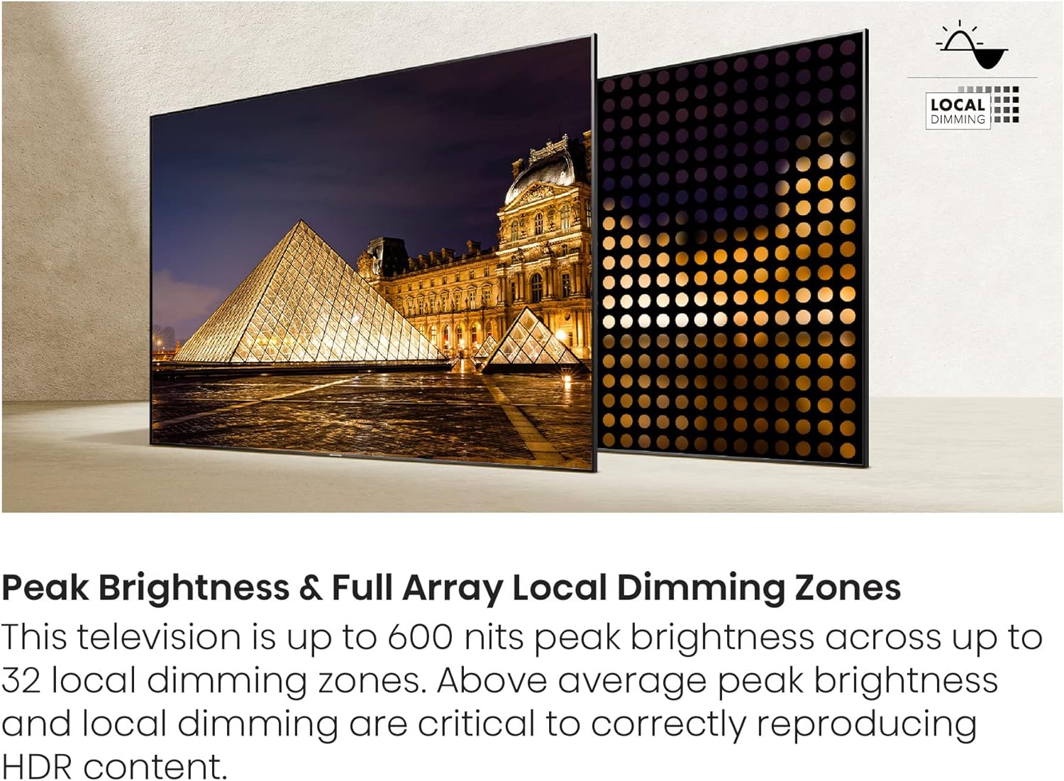- Local Dimming Zones: Up to 32