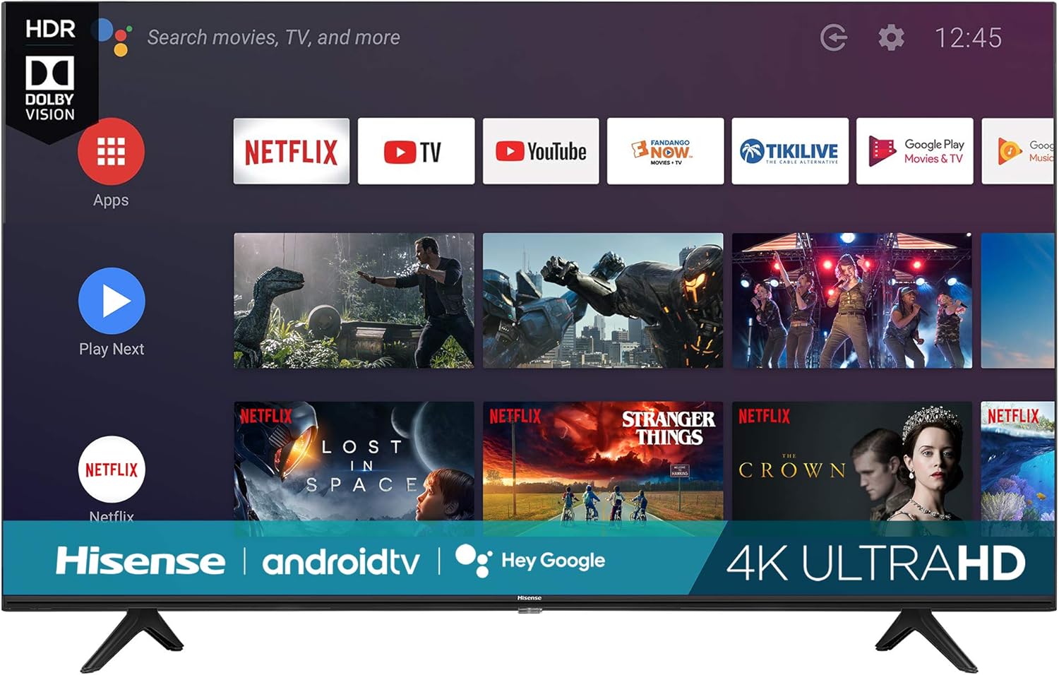 Introducing the Hisense 65-Inch Class H6570G Android Smart TV. Experience vibrant colors and incredible detail with 4K Ultra HD resolution, enhanced by Dolby Vision HDR and HDR10, all powered by the Android operating system for seamless access to a world of content and apps.