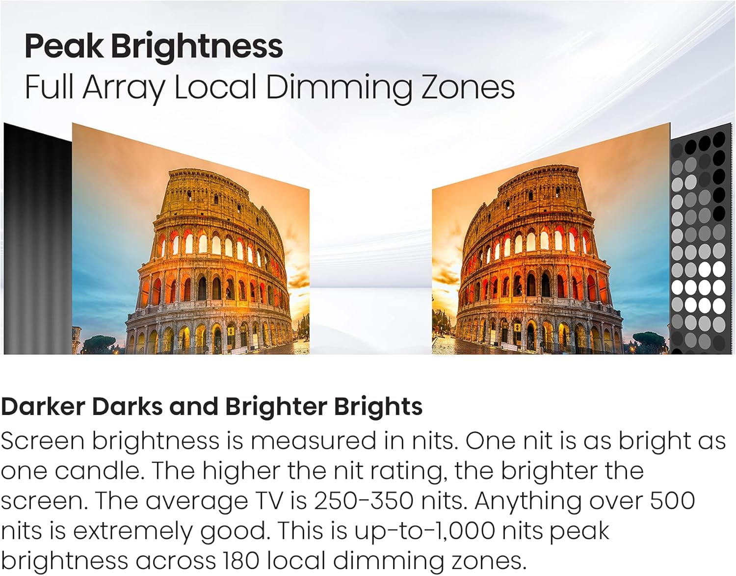 - Local Dimming Zones: Full Array Local Dimming Zones