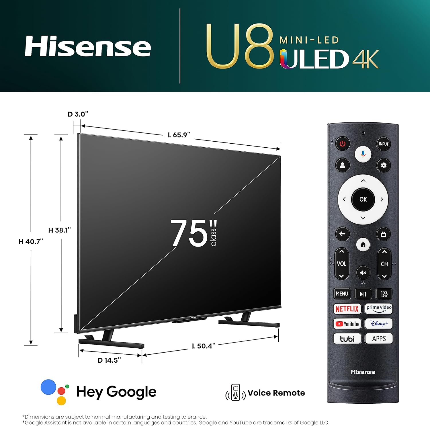 Hisense 75U8K 75-Inch ULED Mini-LED Google TV (Renewed)