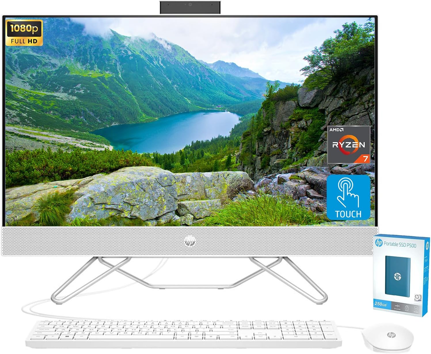 The HP 27 inch All-in-One Desktop combines performance and elegance, offering a seamless computing experience for both work and play. Featuring an AMD Ryzen 7 processor, vibrant touchscreen display, and ample memory and storage, this all-in-one desktop is designed to meet all your computing needs. With Windows 11 Home pre-installed, you're ready to go right out of the box.