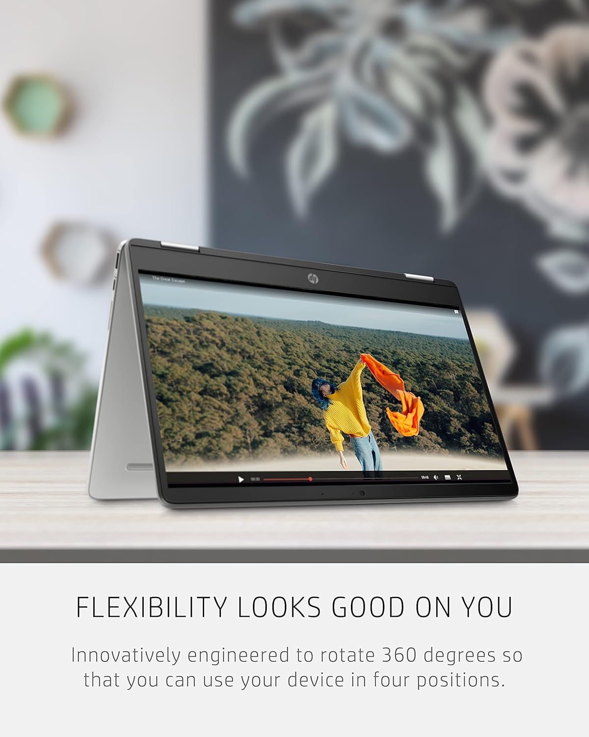The HP Chromebook x360 14a 2-in-1 Laptop is designed for those who need versatility and portability. With its 360-degree rotating screen, you can switch seamlessly between laptop, tablet, tent, and stand modes. Powered by an Intel Pentium Silver processor and featuring a vibrant HD touchscreen, this Chromebook offers the perfect blend of performance and convenience for work, school, and entertainment.