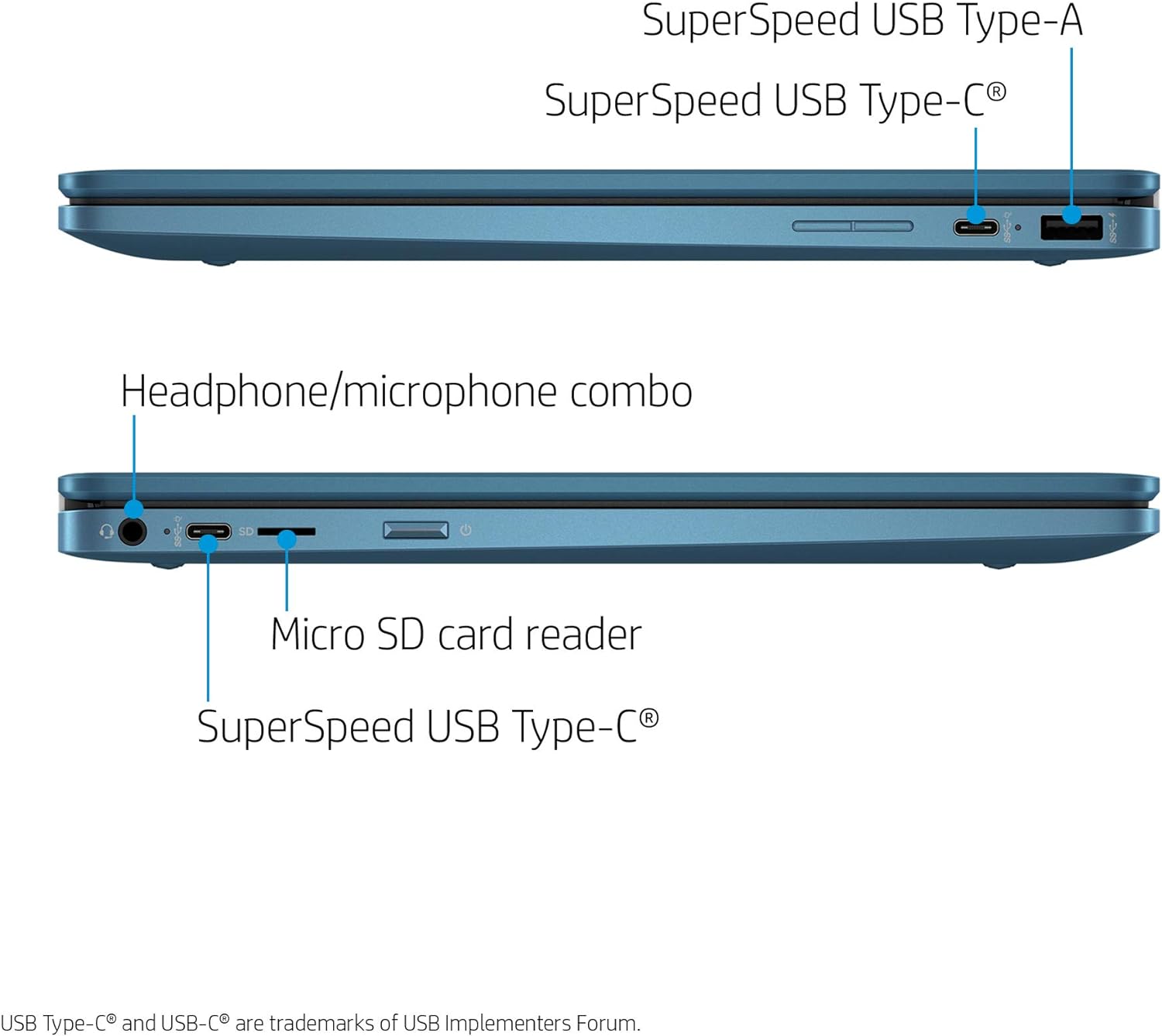 - Ports: USB-C, USB-A, Headphone/microphone combo