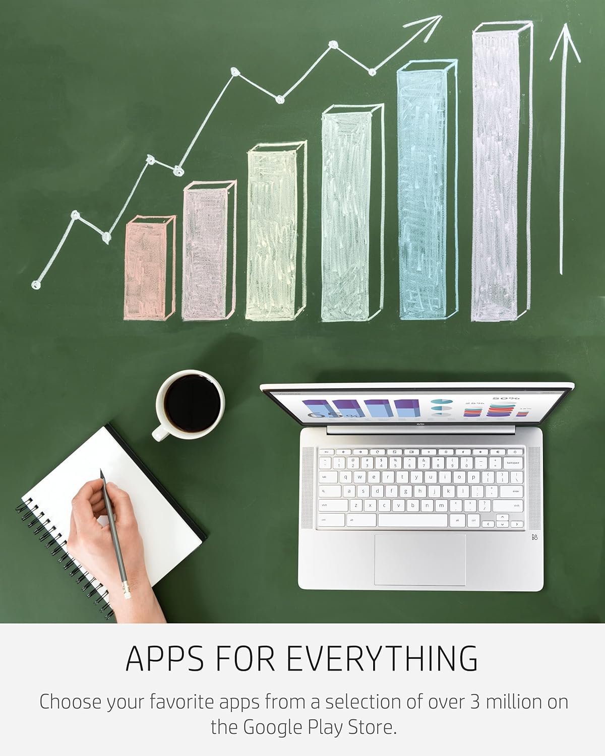 The HP Chromebook 14 Laptop is designed to deliver a seamless and efficient computing experience. Featuring an Intel Celeron processor, ample storage, and a vibrant Full HD display, this Chromebook is perfect for work, entertainment, and school. Enjoy long battery life and the security of Chrome OS in a sleek, portable design.