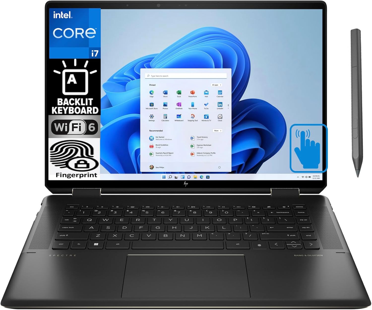 The HP Spectre x360 2-in-1 Laptop is a premium device designed for ultimate versatility and performance. Featuring a stunning 16" 3K+ IPS touchscreen display, a powerful 13th Gen Intel Core i7 processor, 16GB of RAM, and a spacious 1TB SSD, this laptop delivers exceptional performance and stunning visuals. It comes with Windows 11 Home preinstalled and includes a digital stylus pen and leather sleeve. **Specifications:** * Display: 16" 3K+ (3072 x 1920) IPS Touchscreen * Processor: 13th Generation Intel Core i7-13700H 14-Core (up to 5.0GHz) * Memory: 16GB DDR4 3200 MHz SDRAM * Storage: 1TB NVMe M.2 SSD * Graphics: Intel Iris Xe Graphics * Operating System: Windows 11 Home * Connectivity: Intel Wi-Fi 6E AX211, Bluetooth 5.3 * Ports: 2x USB Thunderbolt 4, 1x USB 3.2 Gen 2 Type-A, 1x HDMI v2.0, 1x Card Reader * Keyboard: Backlit Keyboard with Fingerprint Reader * Battery: 6 Cell 83Wh (Up to 14 hours) * Color: Nightfall Black * Dimensions: 14.09 x 9.66 x 0.78 inches * Weight: 9.66 lbs * Included: HP Digital Stylus Pen, Leather Sleeve, ONT 32GB USB DriveWe partner with Amazon and other retailers to provide accurate product information and convenient access to purchase options. As an Amazon Associate we earn from qualifying purchases.