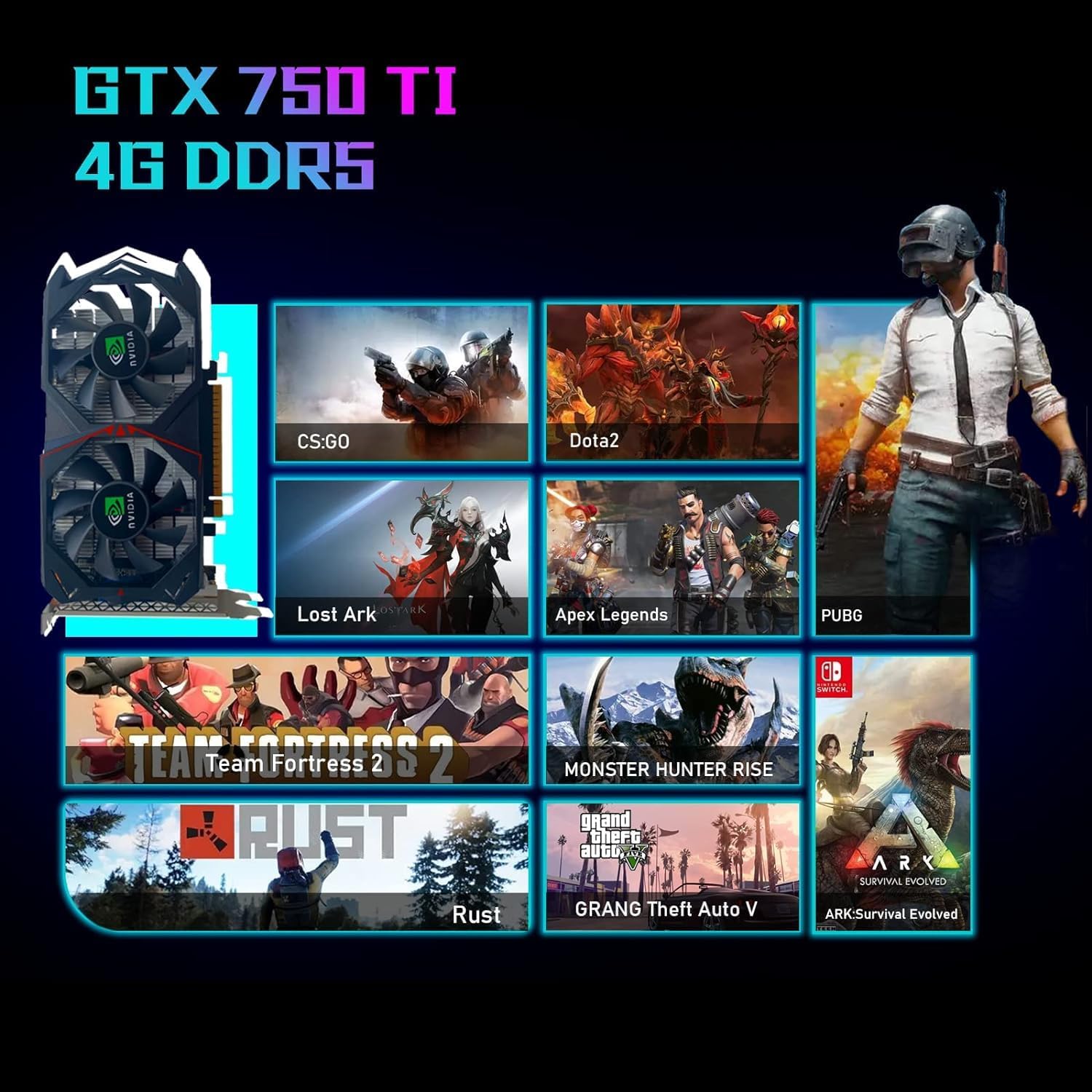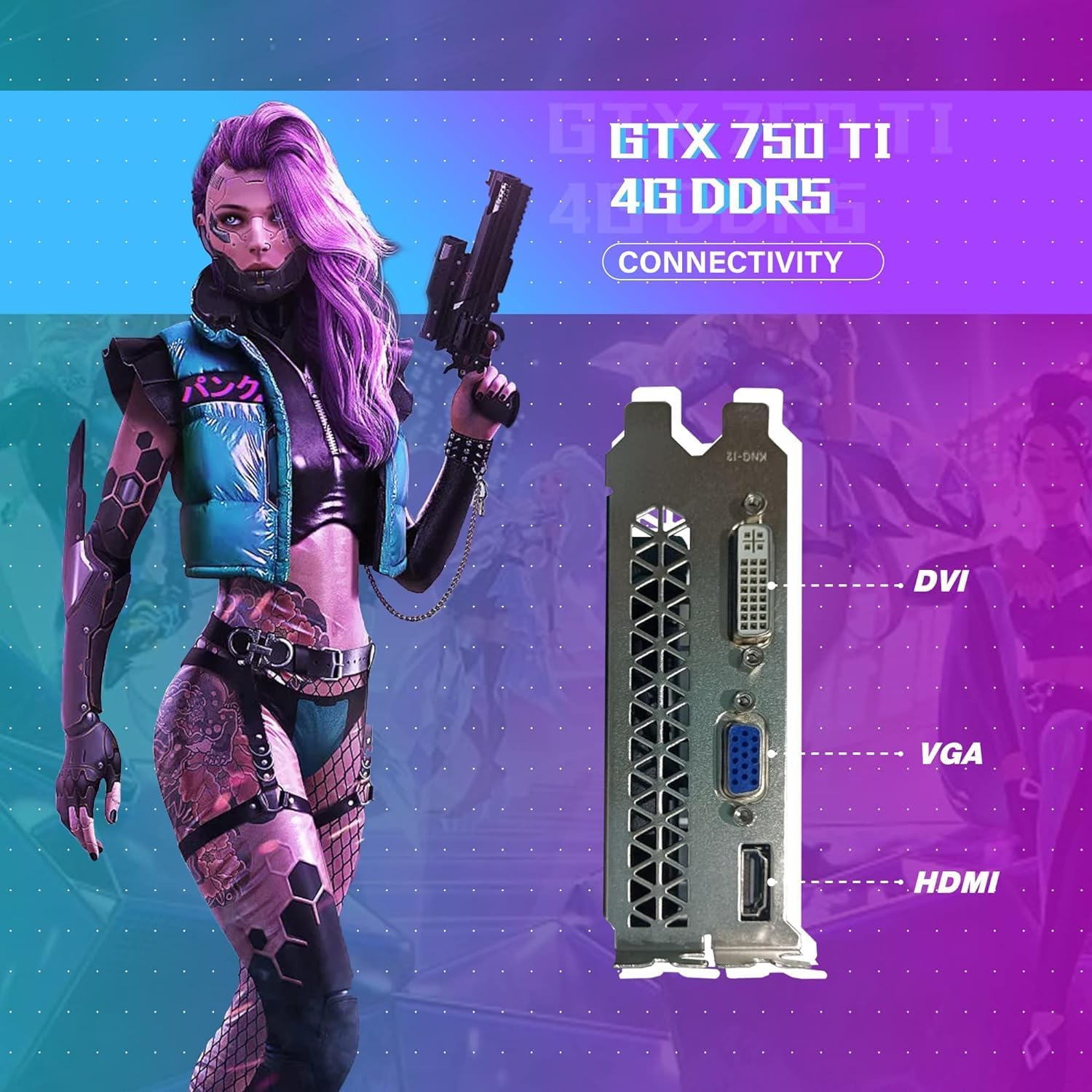 - Graphics: NVIDIA GeForce GTX 750 Ti 4G GDDR5 Video Card (1x HDMI, 1x DVI)