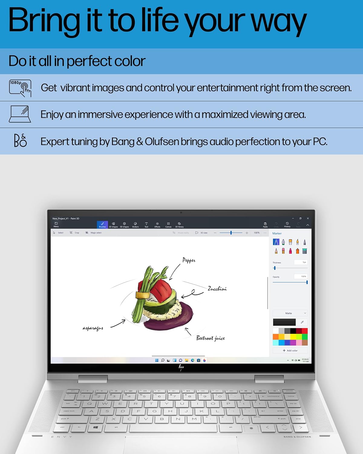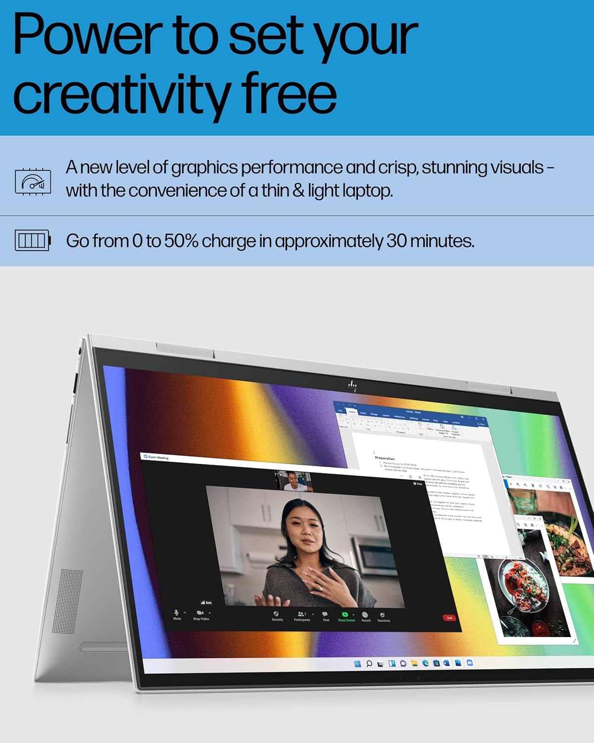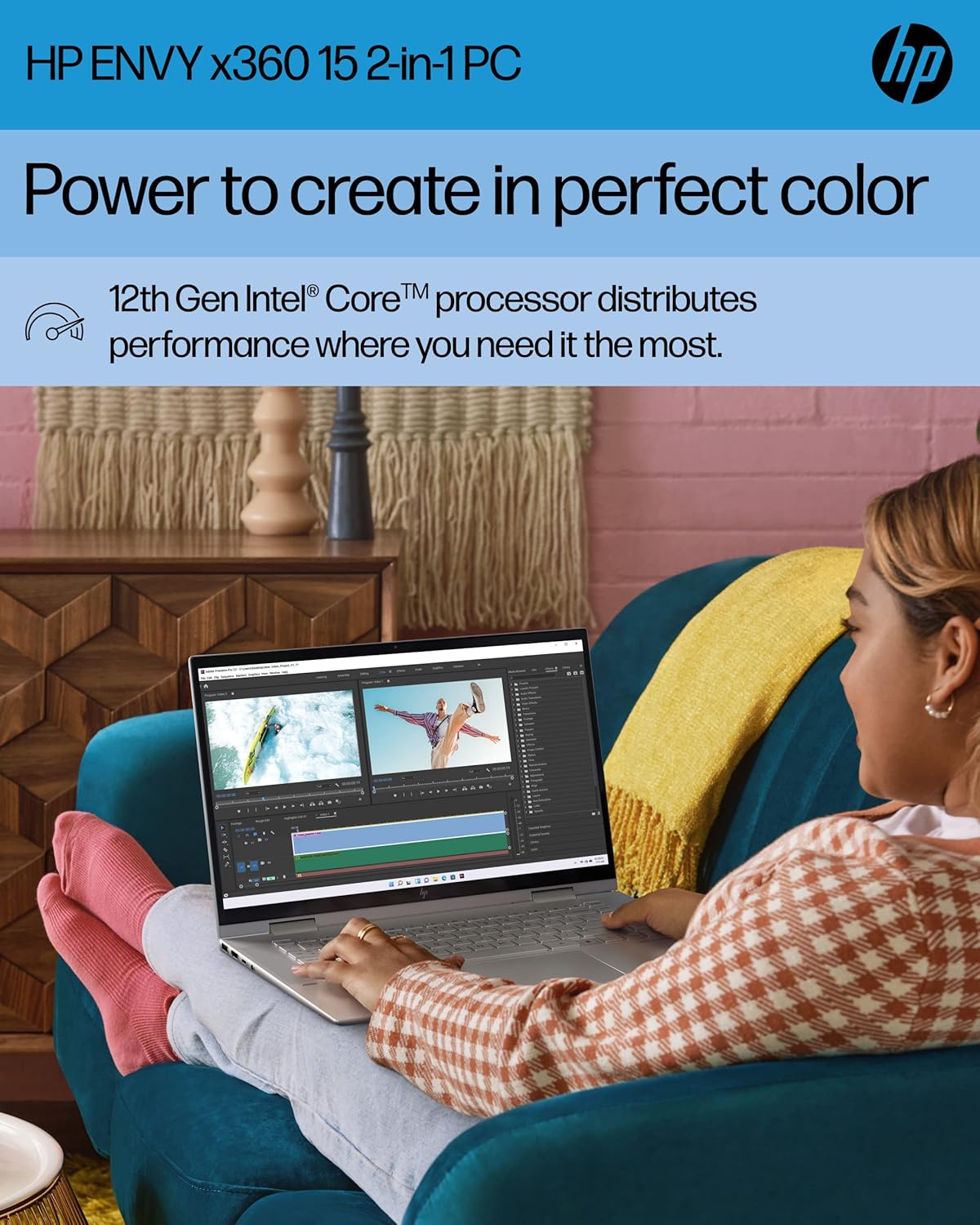 The HP ENVY x360 Convertible Laptop is designed to inspire creativity and enhance productivity. Featuring a 12th Generation Intel Core i7 processor, a vibrant FHD touchscreen display, and a 360-degree hinge, this laptop adapts to your needs, whether you're creating, presenting, or relaxing.
