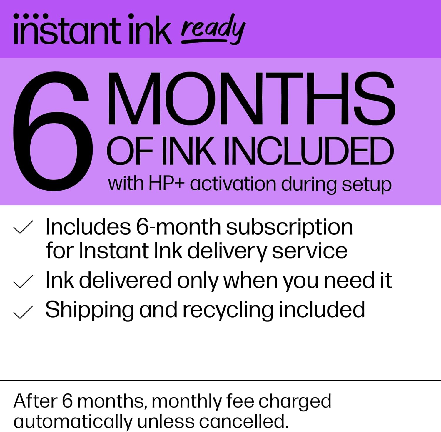 - Ink: 6 Months of Instant Ink included with HP+