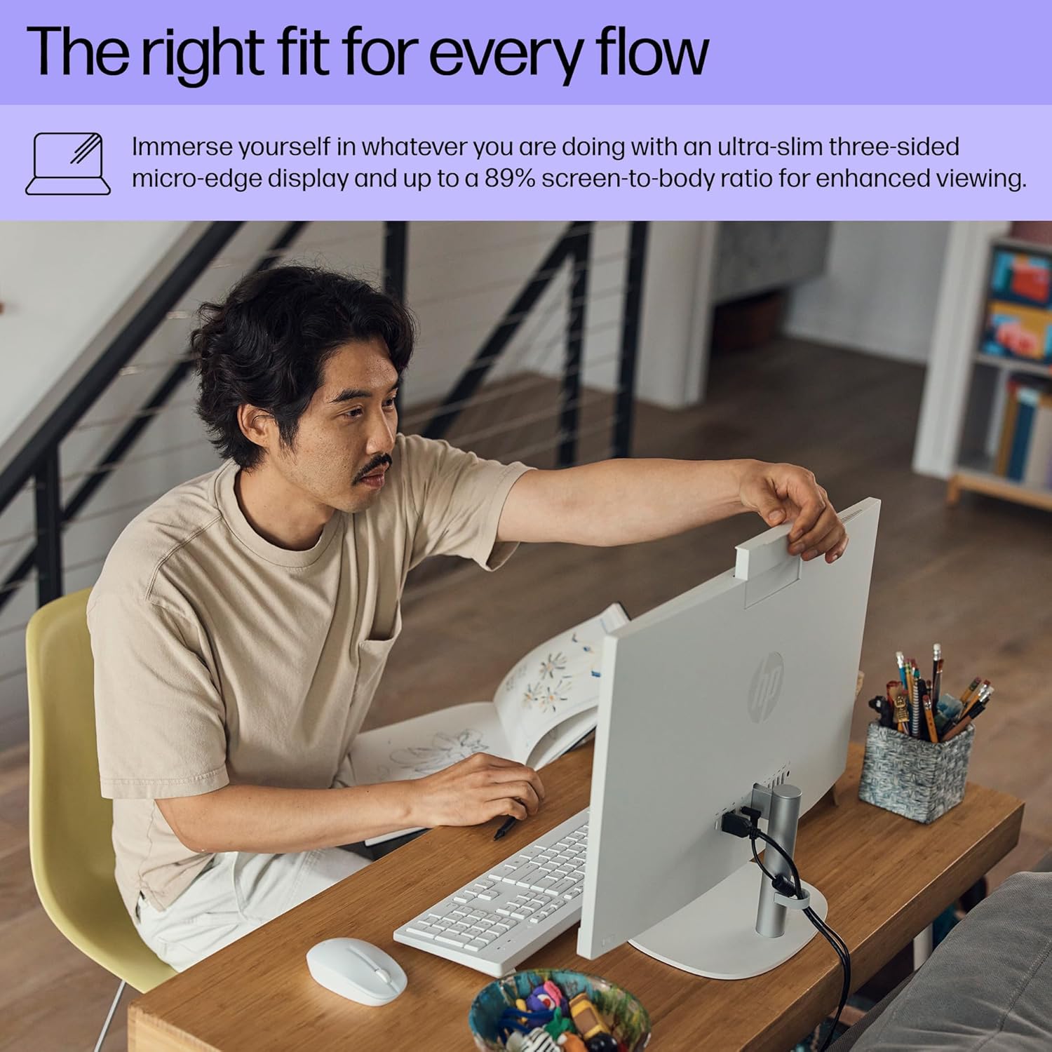 The HP 23.8-inch All-in-One Desktop PC combines style and functionality. Featuring a 13th Generation Intel Core i7 processor, generous memory, and fast SSD storage, it provides a seamless computing experience for both work and entertainment.