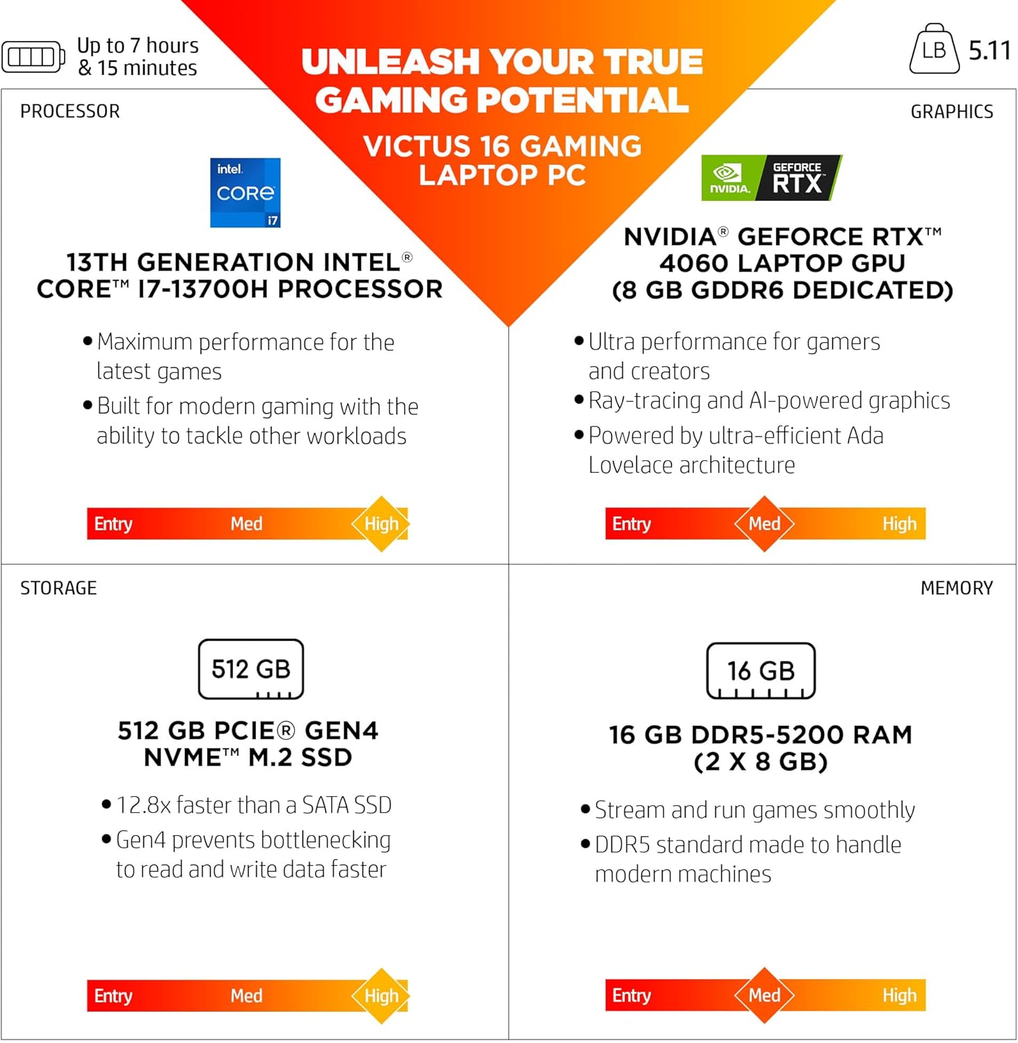 - Storage: 512 GB PCIe Gen4 NVMe M.2 SSD