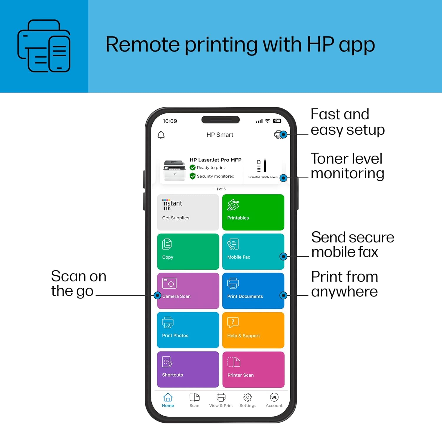 - Mobile Printing: Apple AirPrint, Mopria, HP App.