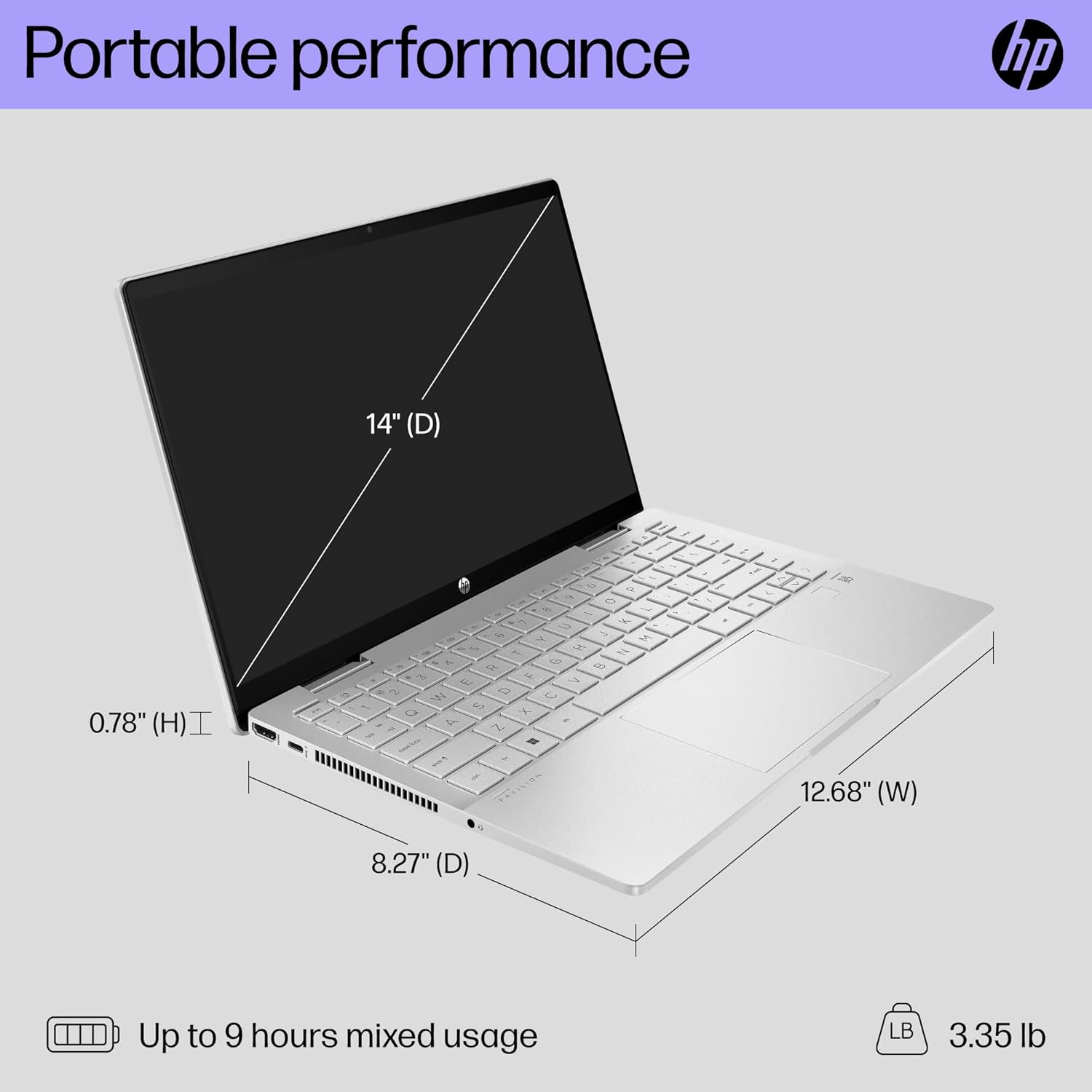 Unleash your productivity and creativity with the HP Pavilion x360 14-ek1099nr. This 2-in-1 laptop features a 360-degree hinge, allowing you to seamlessly switch between laptop, tent, stand, and tablet modes. Powered by a 13th Generation Intel Core i3 processor and boasting a Full HD touchscreen, this laptop is designed for both work and play. Its eco-conscious design incorporates recycled materials and is both EPEAT Gold and ENERGY STAR certified, reflecting HP's commitment to sustainability.