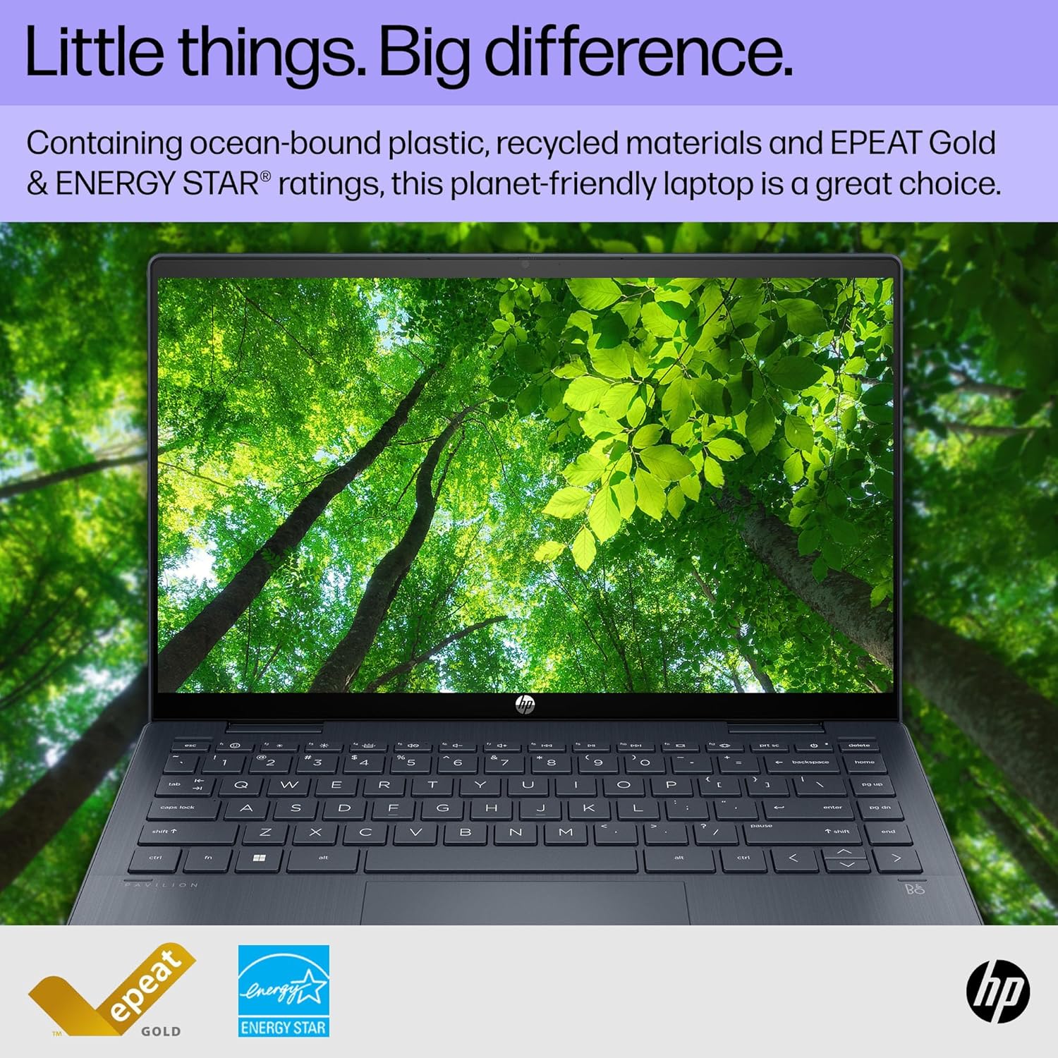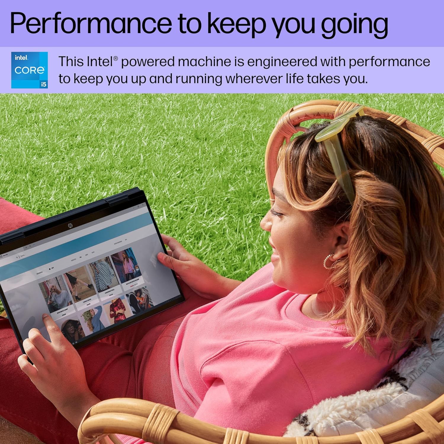 The HP Pavilion x360 14" laptop is designed to adapt to your every need. Its 360-degree hinge allows you to effortlessly switch between laptop, tablet, and tent modes. Powered by a 13th Generation Intel Core i5 processor and featuring Audio by B&O, this laptop delivers both performance and immersive sound. Crafted with recycled materials, it's also a responsible choice for the environment.
