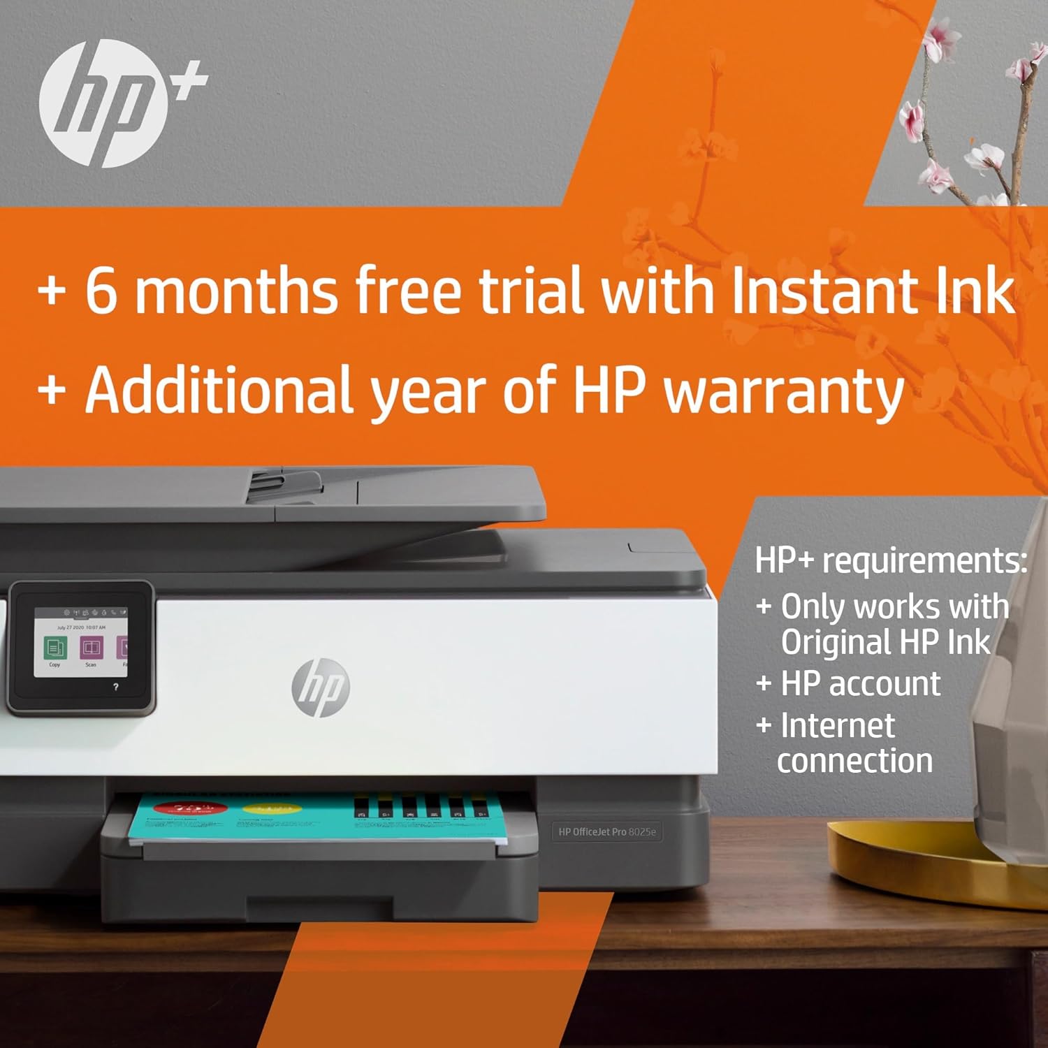 The HP OfficeJet Pro 8025e is a versatile all-in-one printer designed for home and office use. Combining printing, copying, scanning, and faxing capabilities with wireless connectivity and smart features, this printer offers a seamless and efficient printing experience. Featuring the HP+ Smart Printing System, this printer keeps itself up to date and ready to print from virtually anywhere at any time at no additional cost, plus 6 months of Instant Ink.