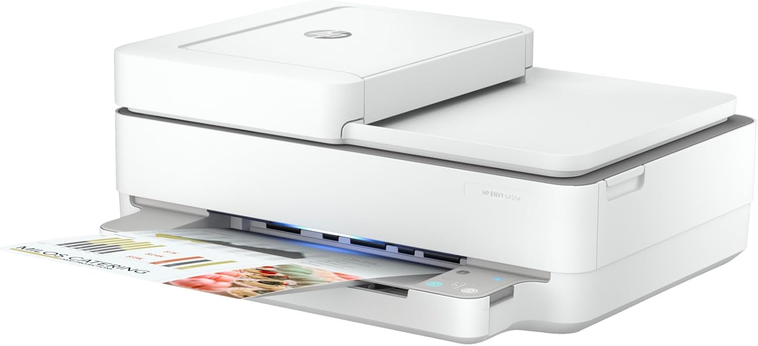 Introducing the HP Envy 6458E, a renewed wireless color all-in-one printer designed for home and family needs. Print, scan, copy, and more with ease, featuring automatic document feeding and seamless connectivity.