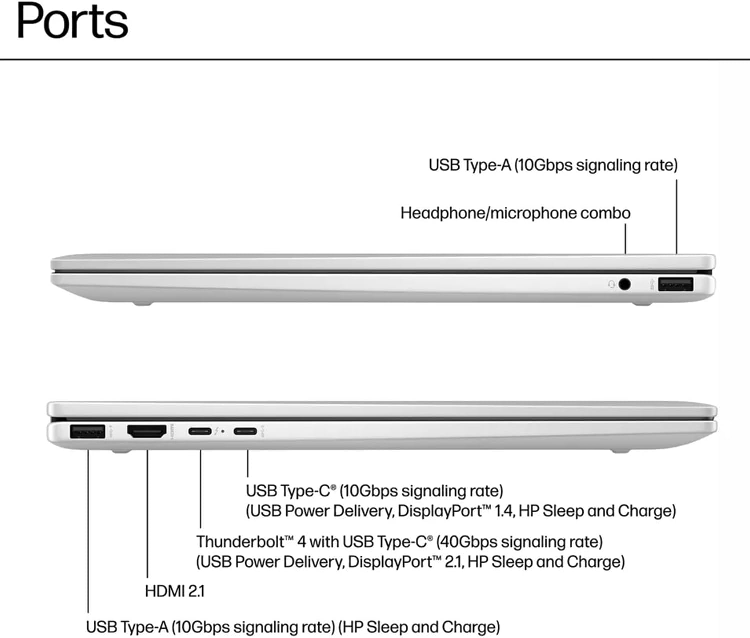 - Ports: 2 x USB Type-A, 1 x USB Type-C, 1 x Thunderbolt 4 with USB Type-C, 1 x HDMI, 1 x Headphone/Microphone Combo Jack