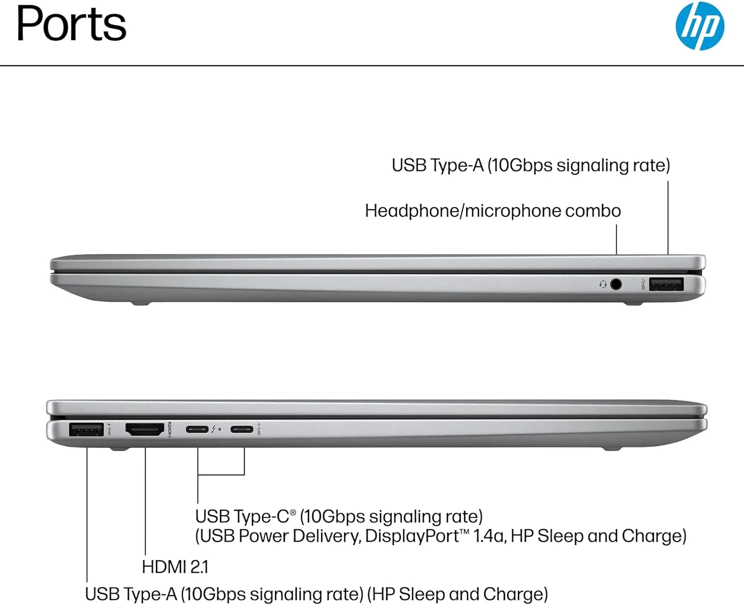 - Ports: 2 x USB Type-C 10Gbps, 2 x USB Type-A 10Gbps, 1 x Headphone/Microphone Combo, 1 x HDMI 2.1