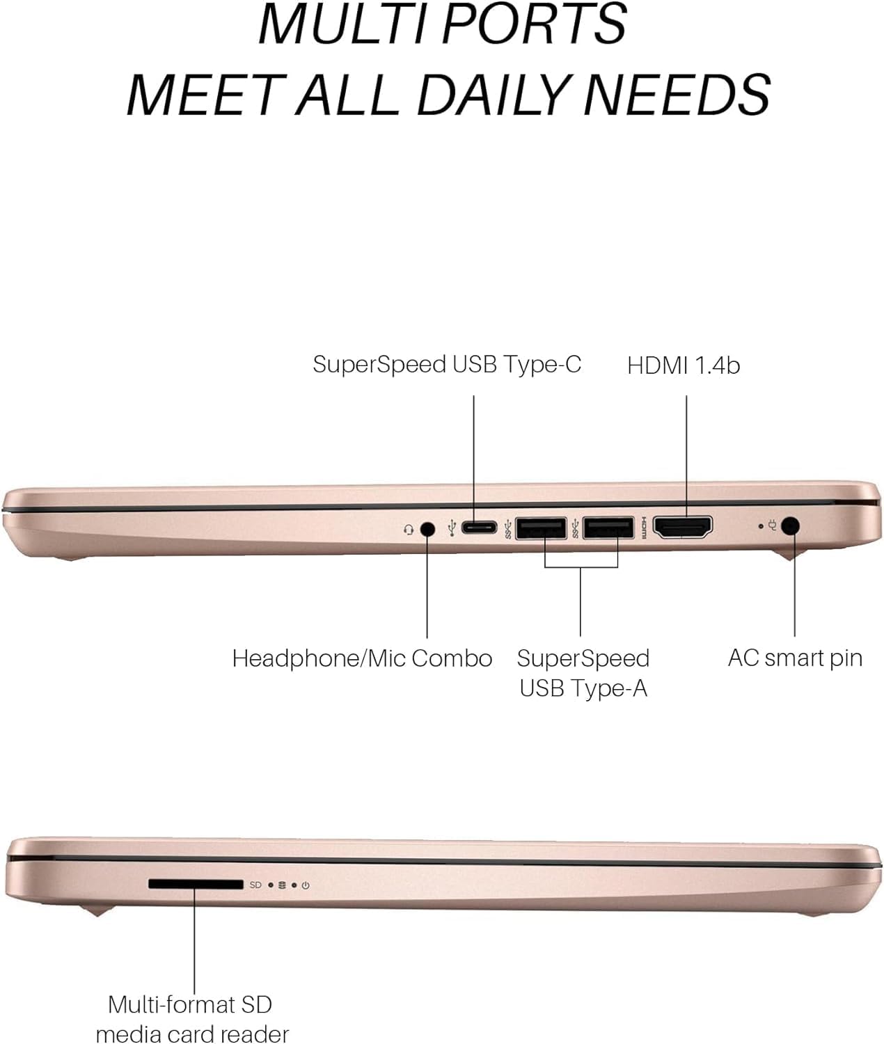 Introducing the HP 14" Laptop, a perfect blend of portability, performance, and value. Powered by an Intel Quad-Core processor, this laptop features a slim design, long battery life, and essential connectivity options, making it ideal for both work and play. Stay productive on the go with the HP 14" Laptop. **Specifications:** * **Processor:** Intel Quad-Core N4120 * **Operating System:** Windows 11 Pro * **Memory:** 16GB DDR4 RAM * **Storage:** 128GB eMMC + 256GB Micro SD * **Display:** 14-inch HD (1366 x 768) * **Graphics:** Intel UHD Graphics 600 * **Wireless:** Wi-Fi 5 and Bluetooth * **Ports:** 2 x USB-A 3.0, 1 x USB-C 3.0, 1 x HDMI, 1 x Headphone/Microphone Combo Jack, 1 x SD media card reader * **Battery Life:** Up to 11 hours and 30 minutes * **Color:** Rose Gold * **Dimensions:** 12.76 x 8.86 x 0.71 inches * **Weight:** 3.24 poundsWe partner with Amazon and other retailers to provide accurate product information and convenient access to purchase options. As an Amazon Associate we earn from qualifying purchases.