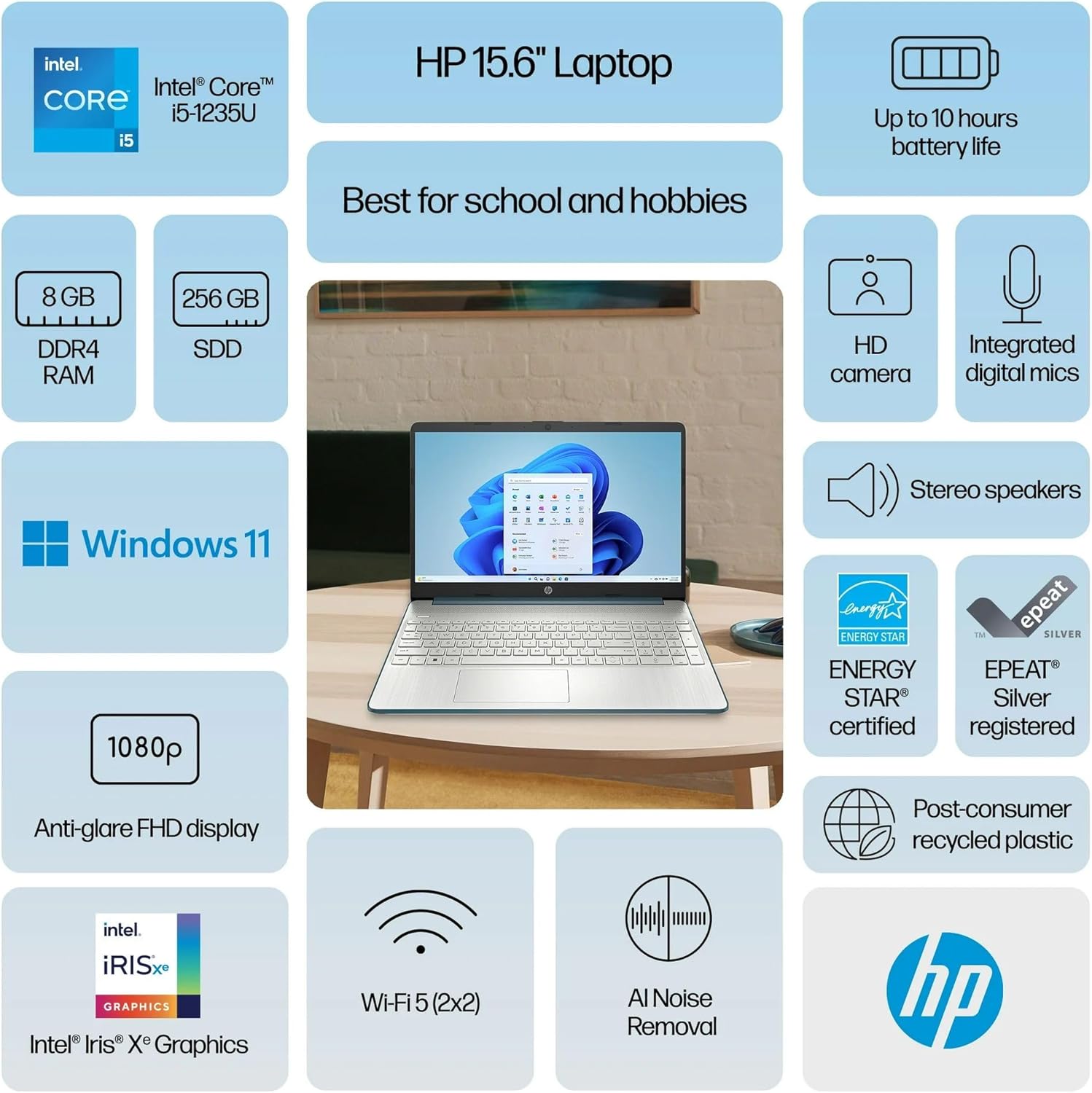 - Processor: 12th Gen Intel 10 Cores i5-1235U (up to 4.4 GHz)