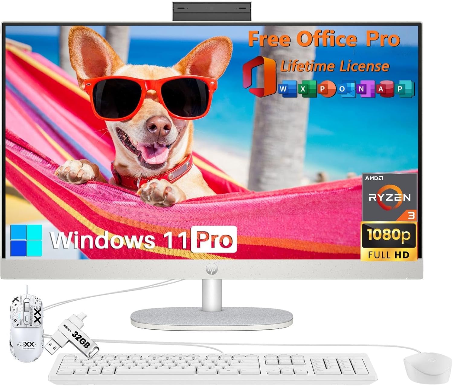 HP All-In-One Desktop 27" FHD Ryzen 3 7320U with Office Lifetime License
