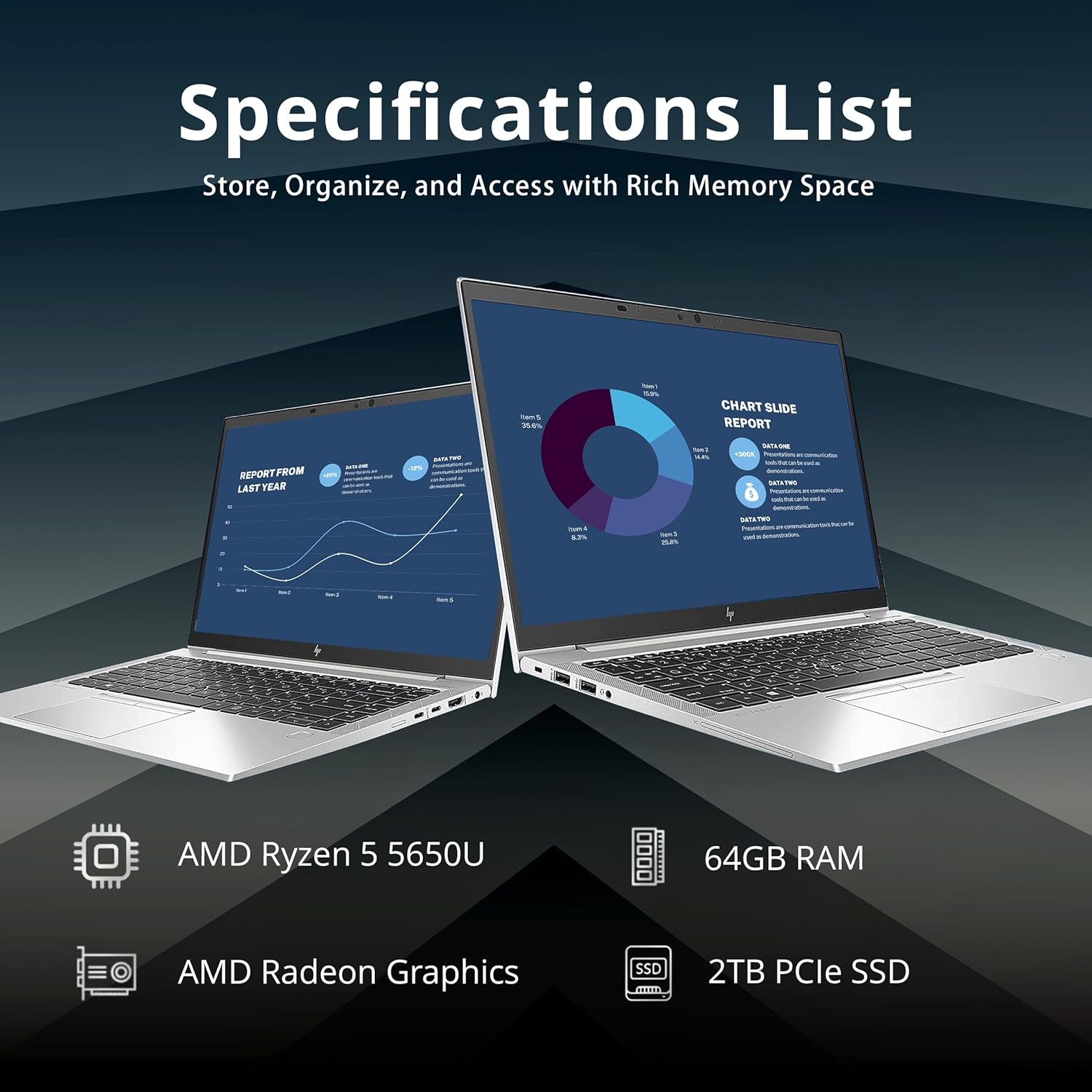 HP EliteBook 845 G8 14" Laptop - Ryzen 5 Pro, 64GB RAM, 2TB SSD