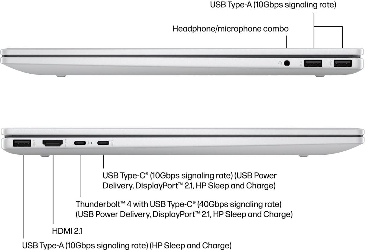 - 1x Thunderbolt 4 (USB Type-C, 40Gbps, USB Power Delivery, DisplayPort 2.1, HP Sleep and Charge)