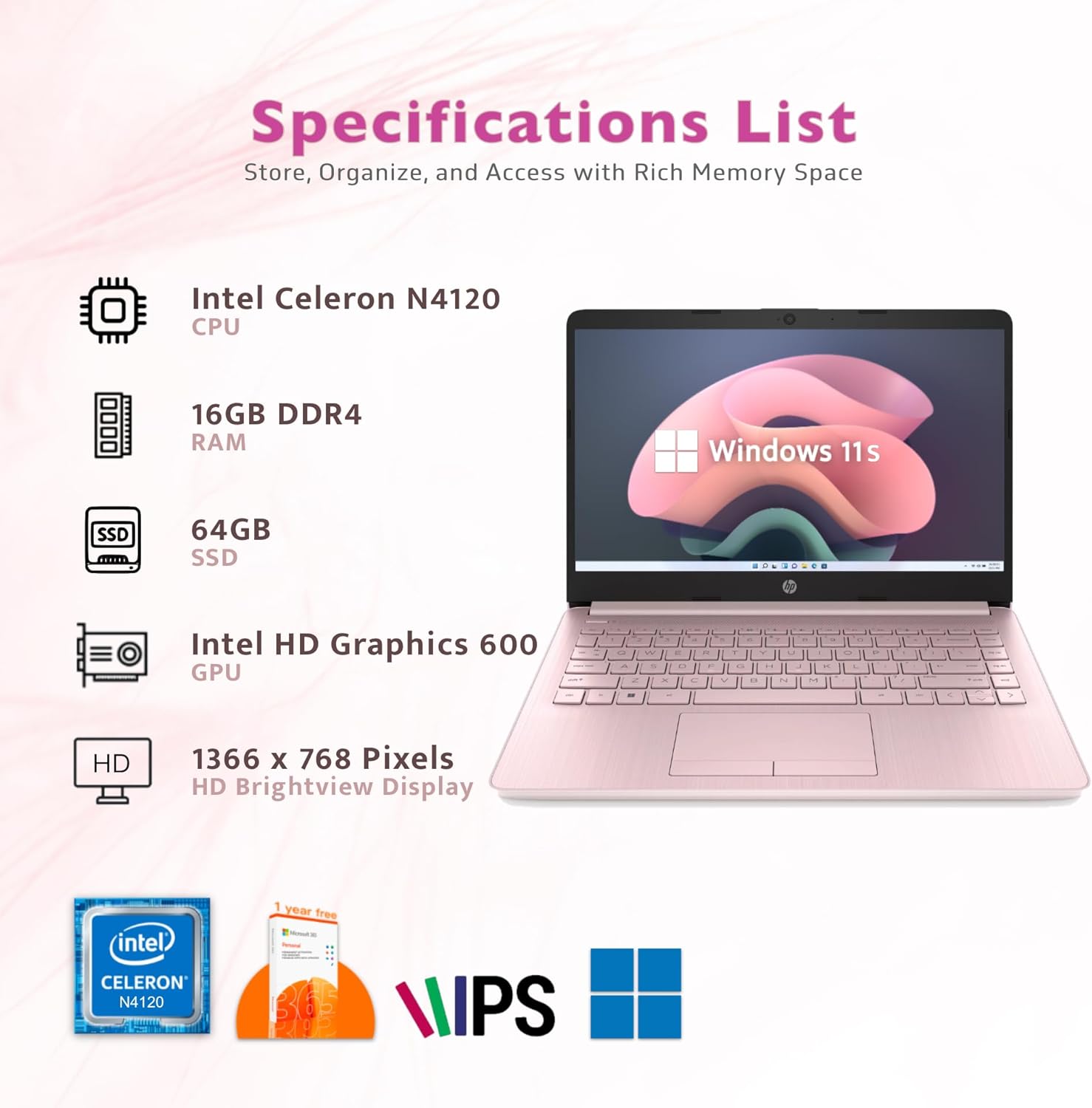 HP Stream 14" HD Laptop Celeron 16GB RAM 64GB eMMC Pink