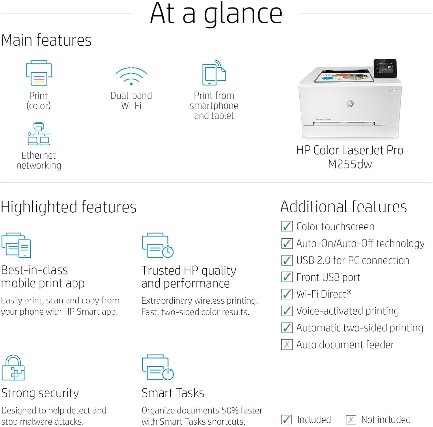 Streamline your office printing with the HP Color LaserJet Pro M255dw. This wireless laser printer delivers vibrant color prints, fast speeds, and convenient mobile printing capabilities. With automatic duplex printing and a user-friendly touchscreen, it's designed to boost productivity and efficiency.