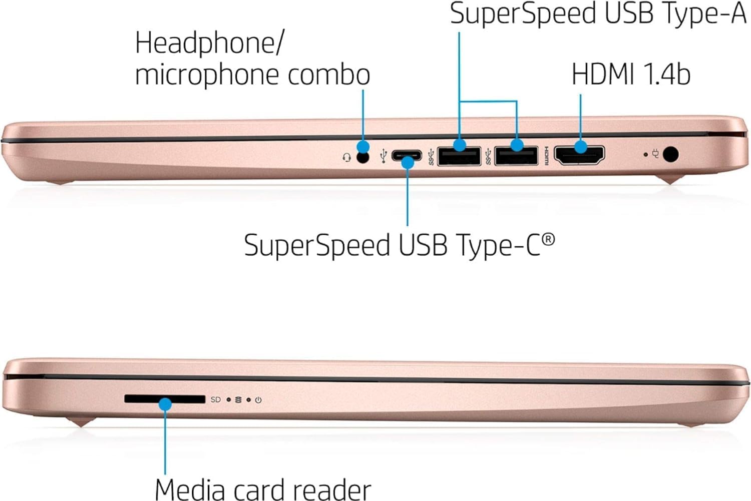 - Display: 14-inch diagonal HD (1366 x 768), micro-edge, BrightView, 220 nits, 45% NTSC