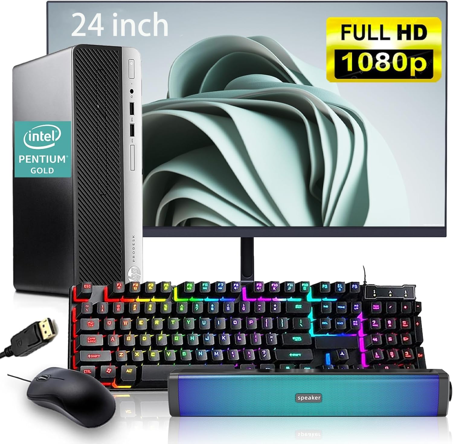 HP ProDesk 400 G6 SFF PC 24" Monitor Pentium 16GB 256GB SSD Renewed