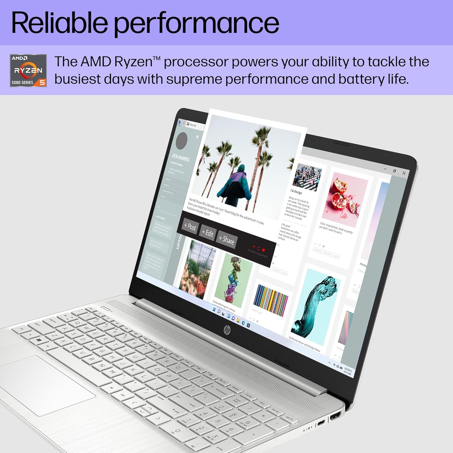 HP Ryzen 5 5500U 15" Laptop - 8GB RAM, 256GB SSD, Windows 11 Home - Silver