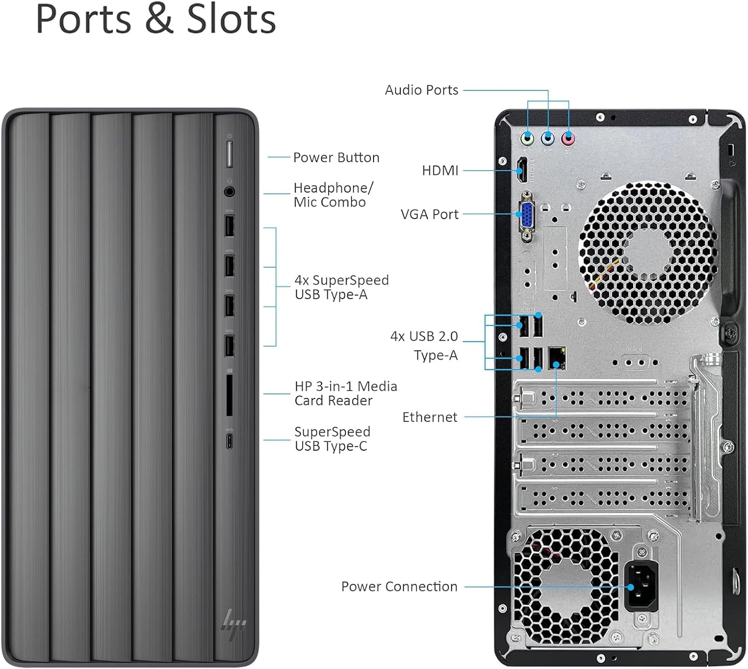 The HP Envy Tower Business Desktop Computer delivers robust performance for professional and personal use. Equipped with an 11th Gen Intel Core i7 processor, ample memory, and fast storage, this desktop is designed to handle demanding tasks with ease. **Specifications:** * **Operating System:** Windows 11 Professional * **Processor:** 11th Gen Intel Core i7-11700 (2.50GHz base, up to 4.90 GHz with Turbo Boost) * **Cores/Threads:** 8 Cores, 16 Threads * **Memory:** 32GB DDR4 RAM * **Storage:** 1TB PCIe NVMe M.2 SSD * **Graphics:** Intel UHD Graphics 750 * **Network Interface:** 10/100/1000 Base-T Network * **Wireless Connectivity:** Realtek Wi-Fi 5 (2x2) and Bluetooth combo * **Front Ports:** 1 x Headphone/Microphone Combo, 4 x SuperSpeed USB Type-A, 1 x HP 3-in-1 Media Card Reader, 1 x SuperSpeed USB Type-C * **Rear Ports:** 4 x USB 2.0 Type A, 1 x Audio In/Out, 1 x VGA, 1 x HDMI, 1 x RJ-45, 1 x Microphone * **Dimensions:** 6.12 x 11.97 x 13.28 inches * **Weight:** 13.14 lbsWe partner with Amazon and other retailers to provide accurate product information and convenient access to purchase options. As an Amazon Associate we earn from qualifying purchases.
