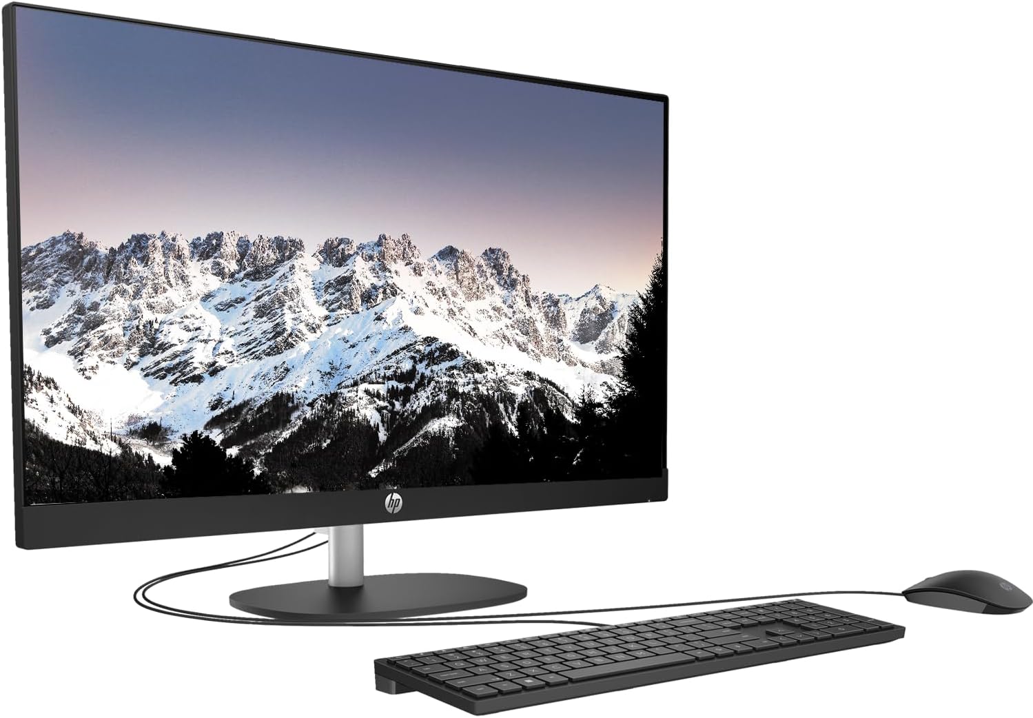 Introducing the HP Business 27" All-in-One Desktop, designed for seamless performance and professional-grade features. This sleek, black all-in-one computer combines power and convenience, making it ideal for business environments. Experience fast processing, ample memory, and enhanced security with Windows 11 Pro, all in one stylish package.