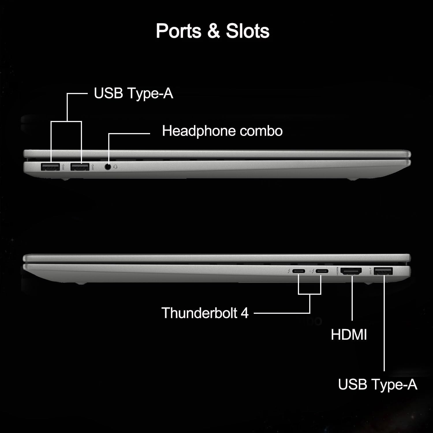 - Ports: 2 x Thunderbolt 4, 3 x USB 3.2 Type-A, 1 x HDMI
